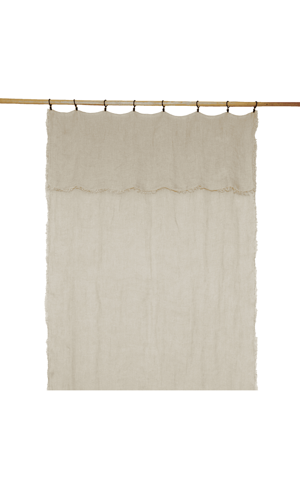 Son aspect légèrement froissé, typique du lin, et sa finition volontairement brute lui donnent beaucoup de caractère. Suspendu à des anneaux, il s'installe facilement et habille la fenêtre avec discrétion, sans jamais allourdir l'espace.