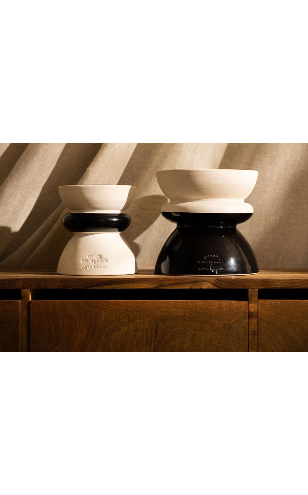 Entièrement faite à la main par des artisans potiers marocains, en céramique émaillée et cire naturelle.