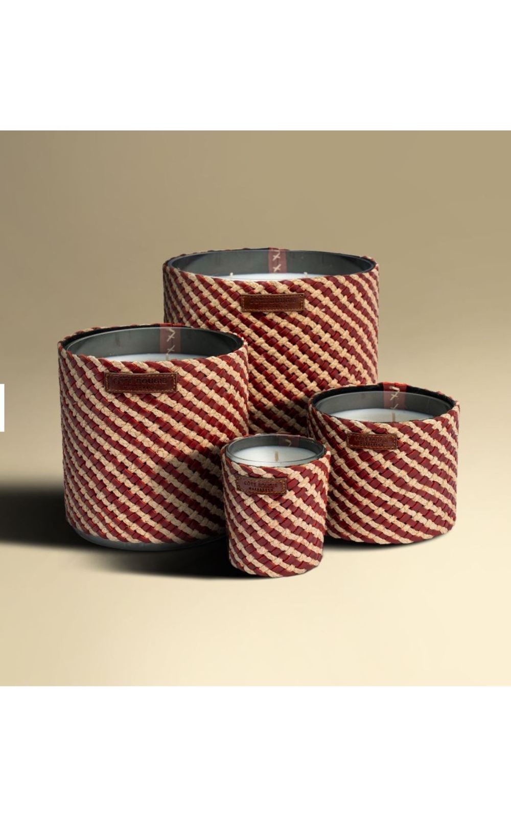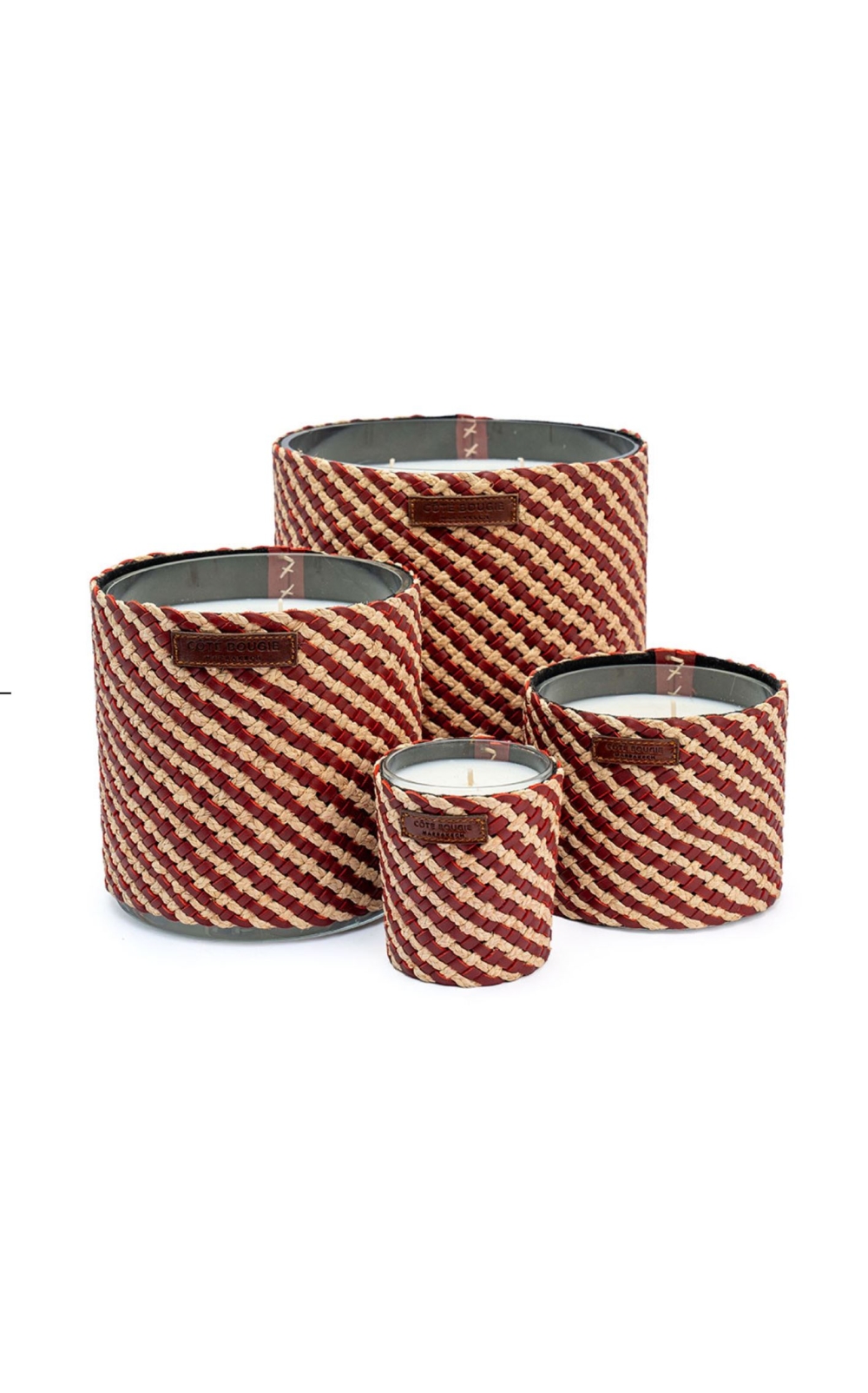 Les bougies Raphia cuir Assia de chez Coté bougie, élégance artisanale et savoir-faire marocain se rencontrent dans cette bougie en cuir et raphia tressé à la main, offrant un voyage olfactif à travers le Maroc.