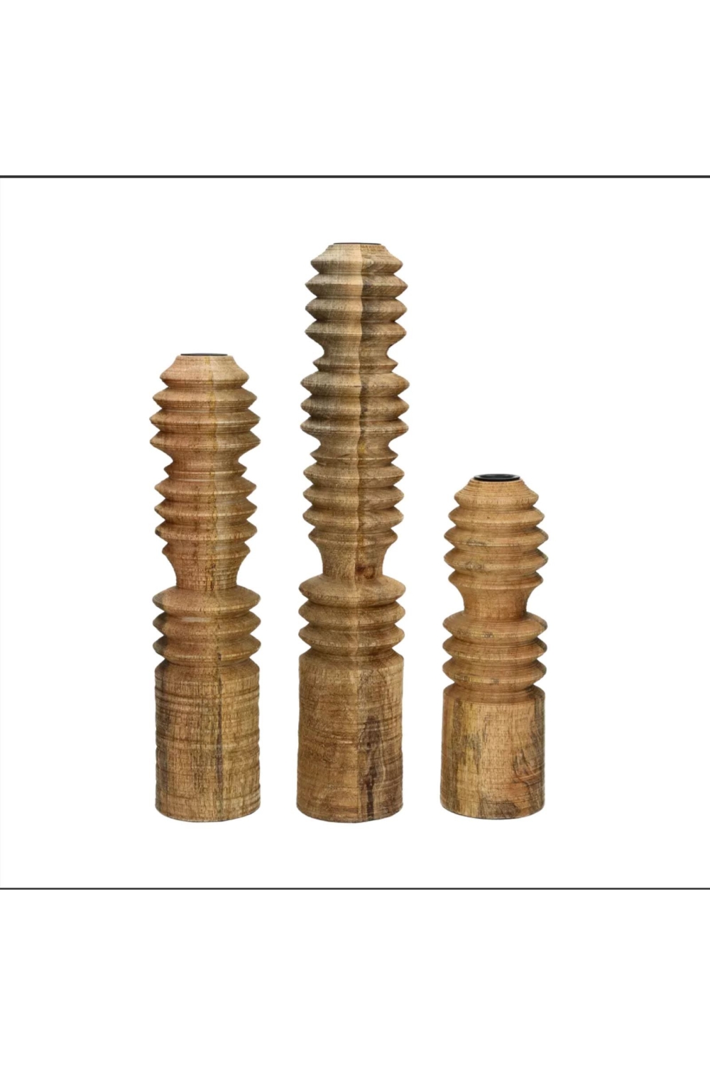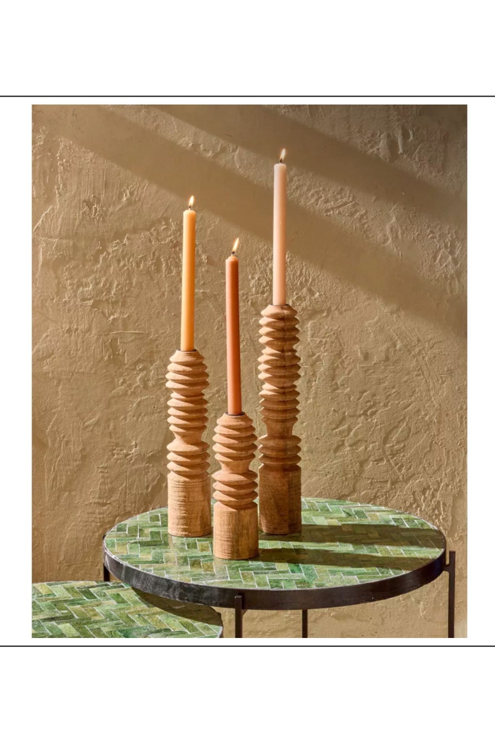 Apportez une touche d’élégance naturelle à votre intérieur avec les bougeoirs Rotello, des pièces sculptées dans du bois de manguier.