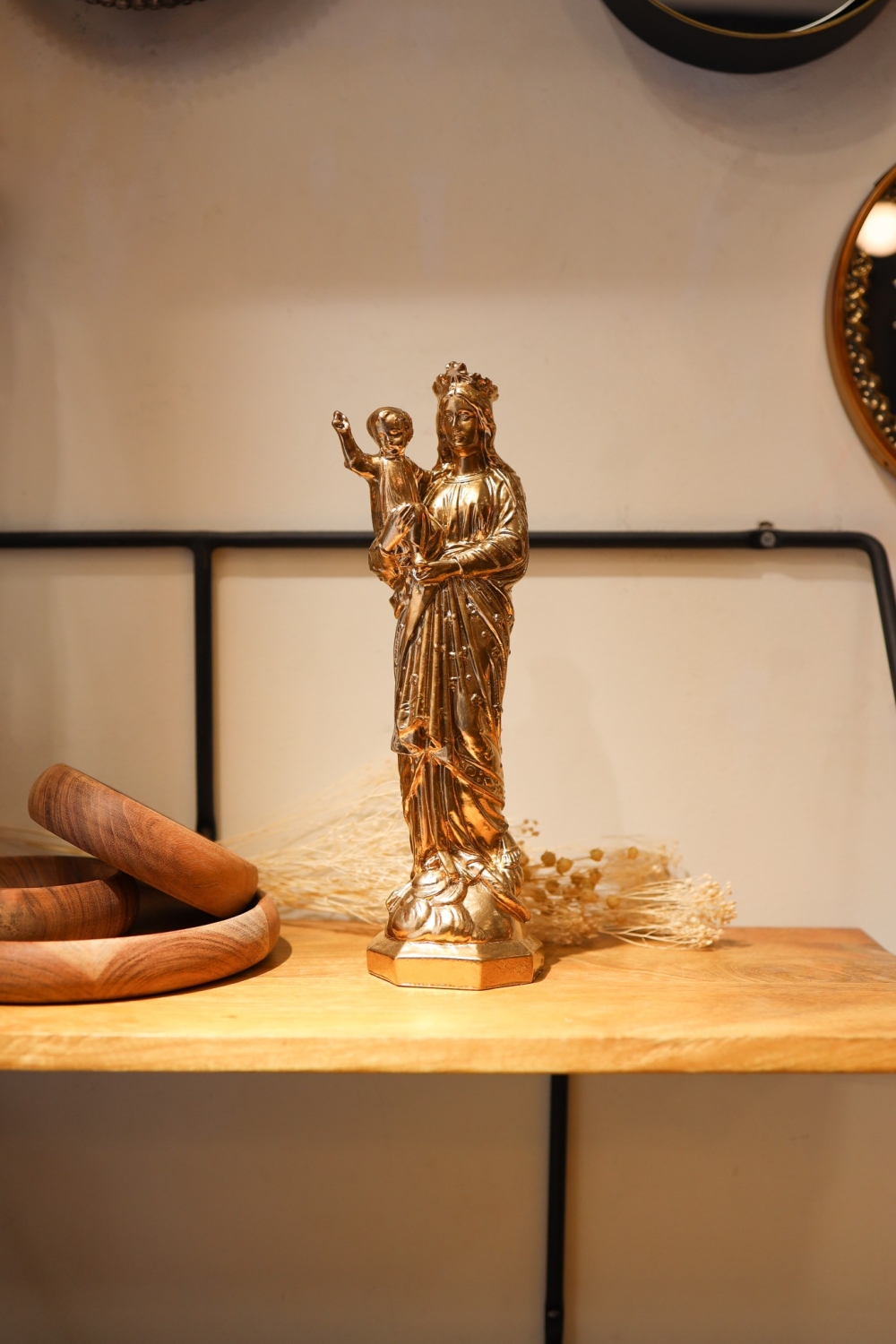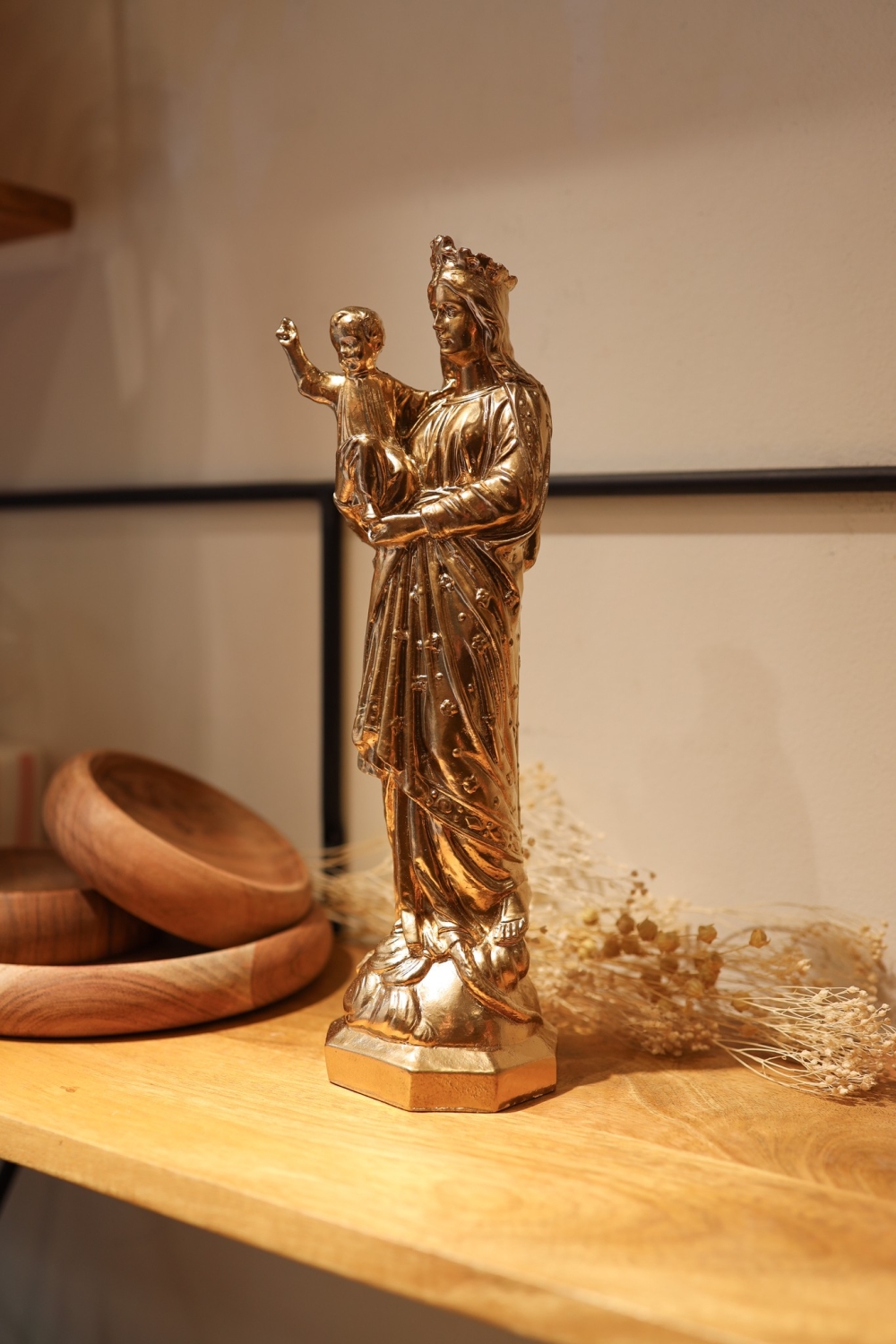 Cette vierge à l'Enfant est fabriquée artisanalement par la Ciergerie des Prémontrés à Tarascon en Provence.