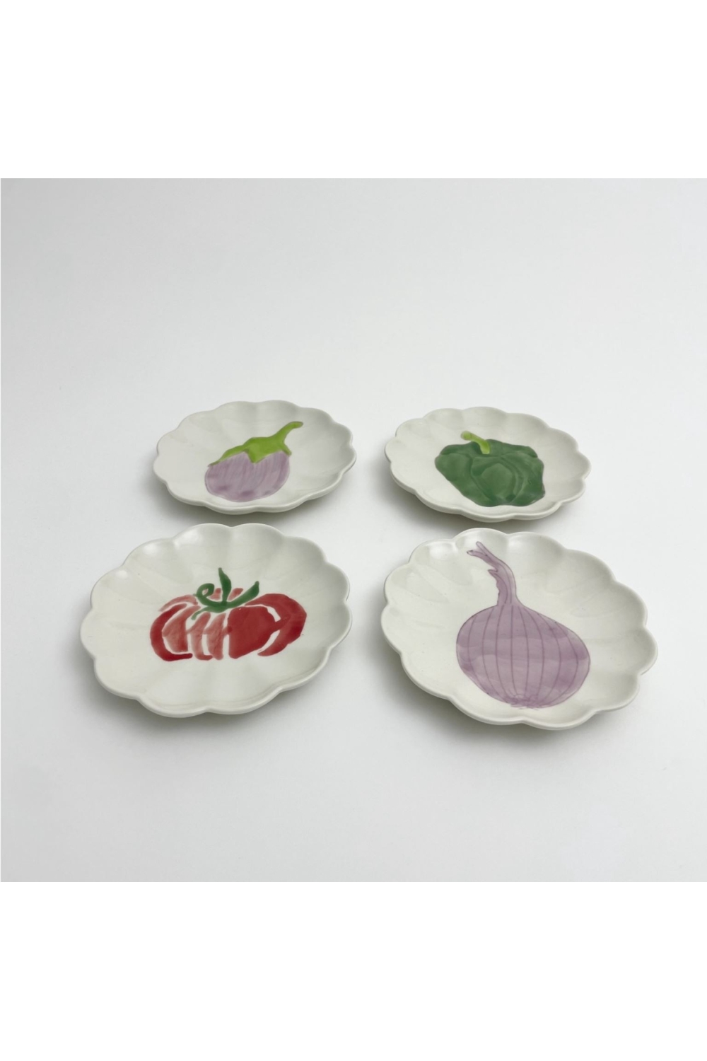 Découvrez nos ravissantes coupelles en céramique blanche, ornées de délicats dessins naïfs représentant fruits et légumes .
