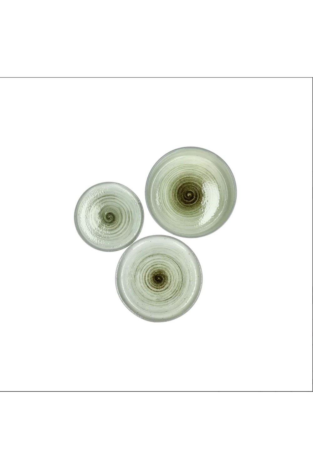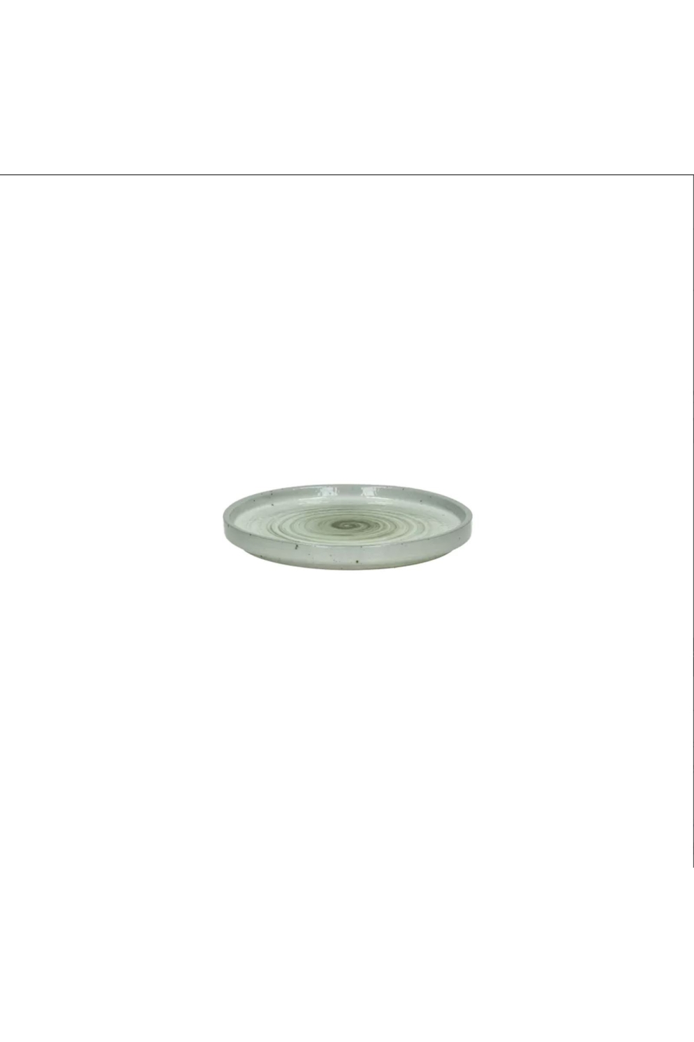 Cette assiette en porcelaine se distingue par ses tons naturels, évoquant l'herbe et la terre, et son motif en spirale évoque un mélange d'huile d'olive et de balsamique. Les confettis de sel et de poivre ajoutent une touche subtile et raffinée.