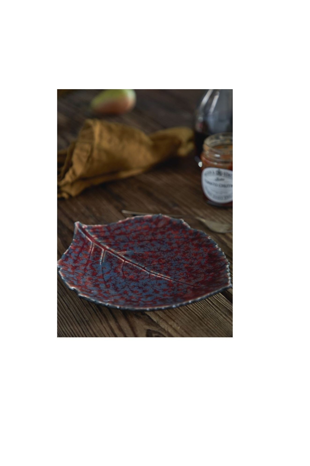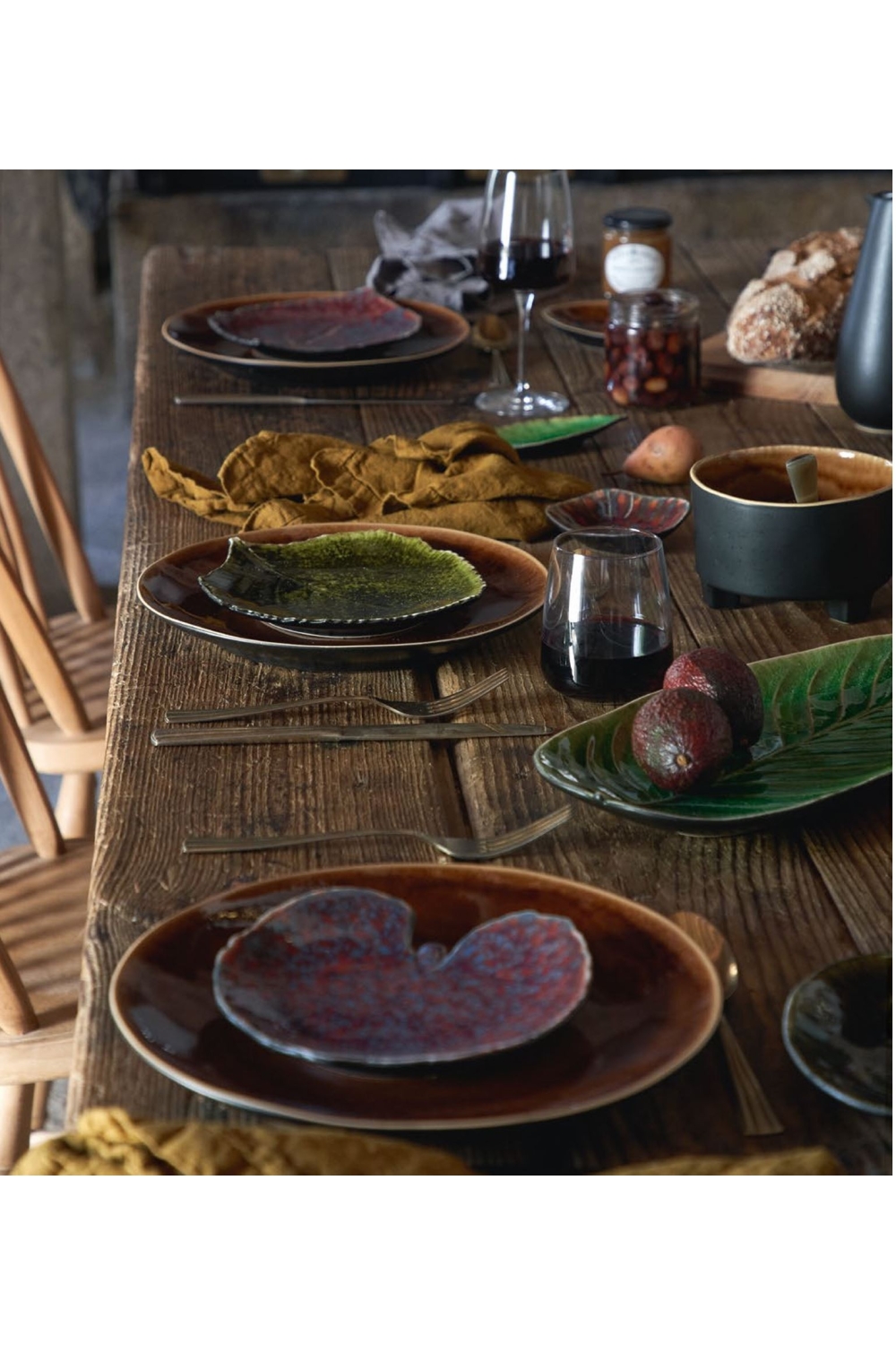 Sublimez vos tables de fête avec nos assiettes en grés en forme de feuille d'alchemille, vert forêt et fabriquées au Portugal.