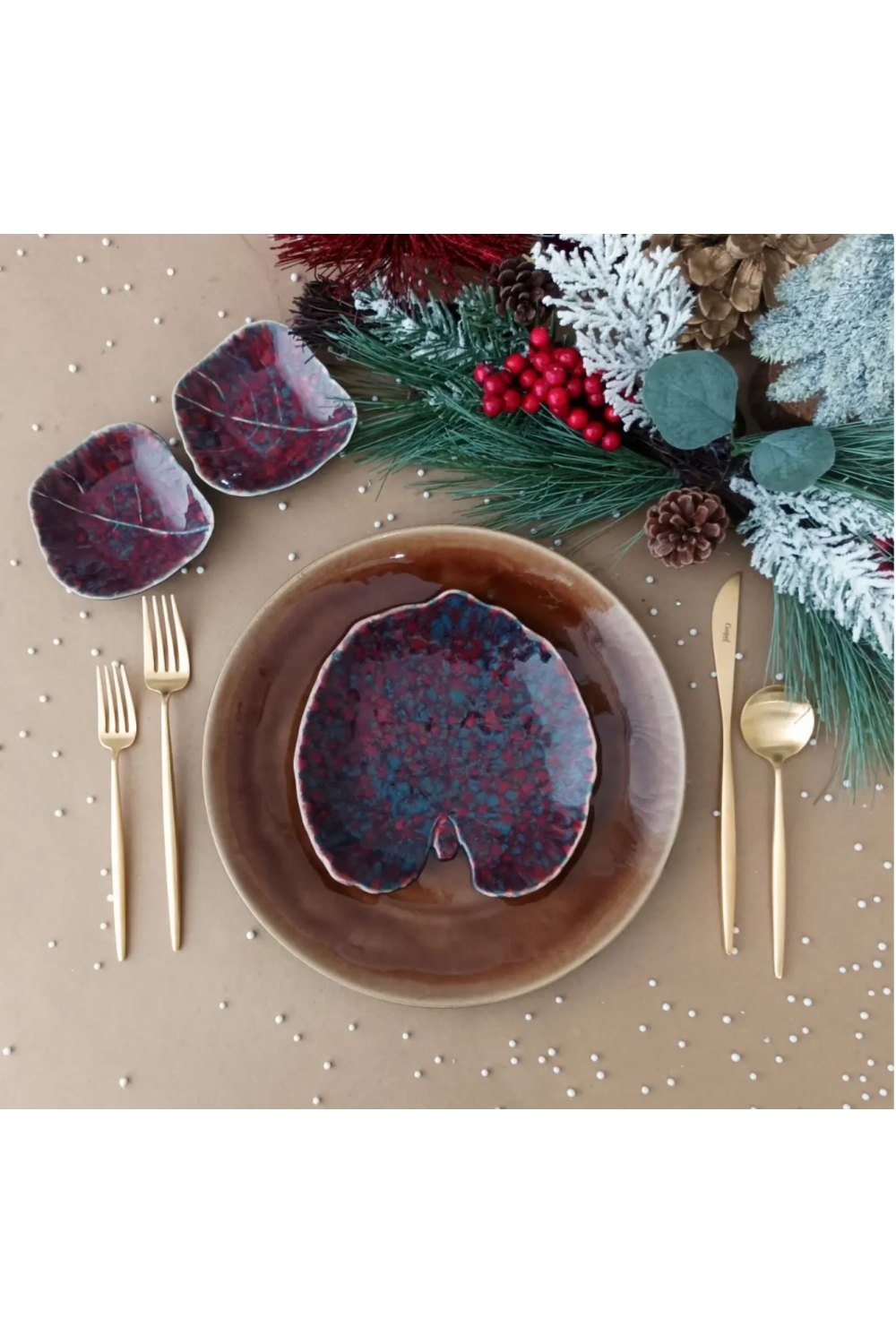 Sublimez vos tables de fête avec nos assiettes en grés en forme de feuille vigne, vert forêt et fabriquées au Portugal.