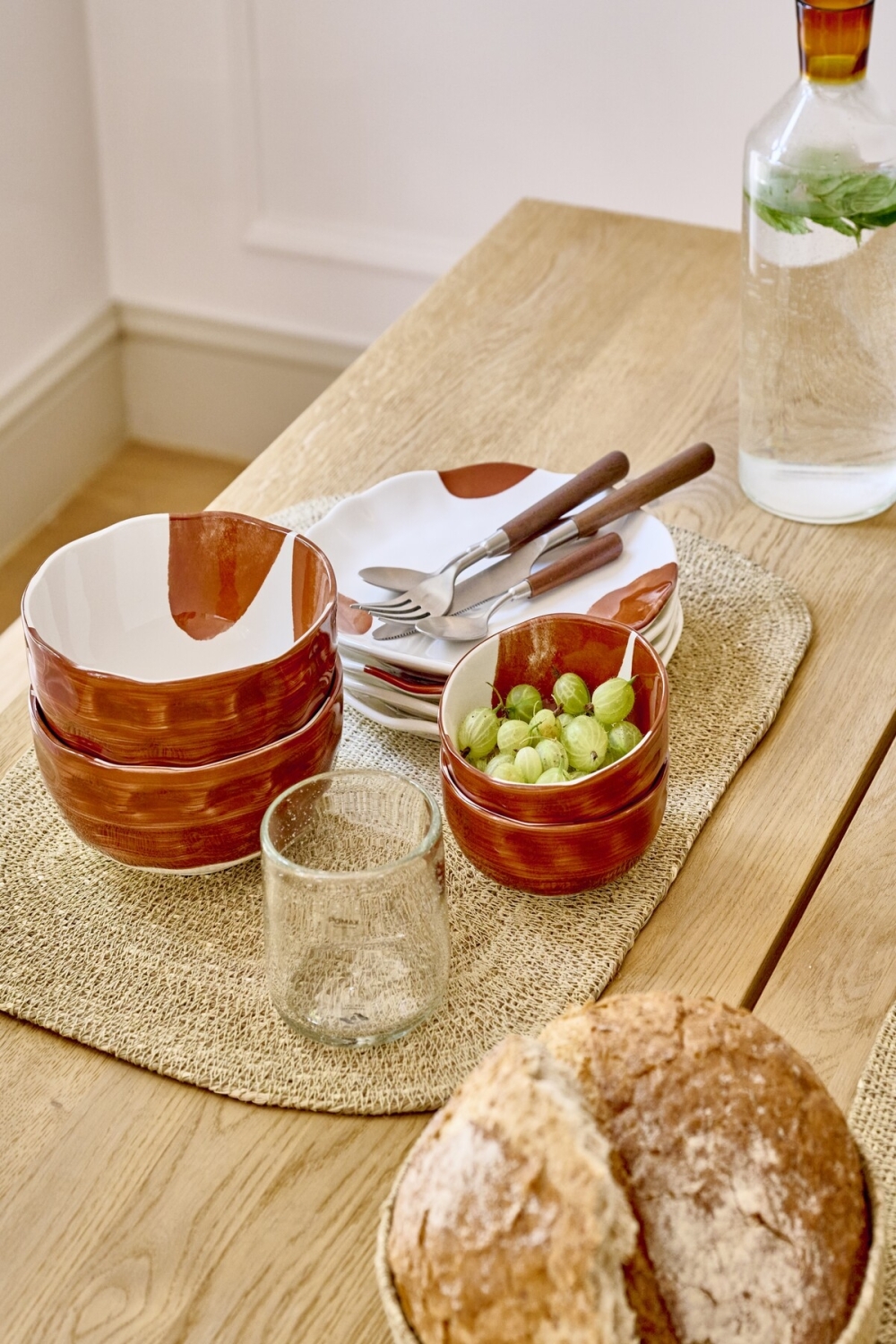 Ces assiettes à dessert dans des tons naturels de rouille et de vert, apporteront une touche originale et chaleureuse à votre table.