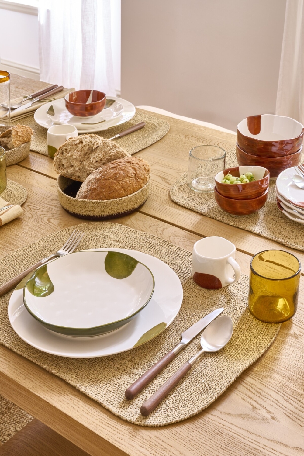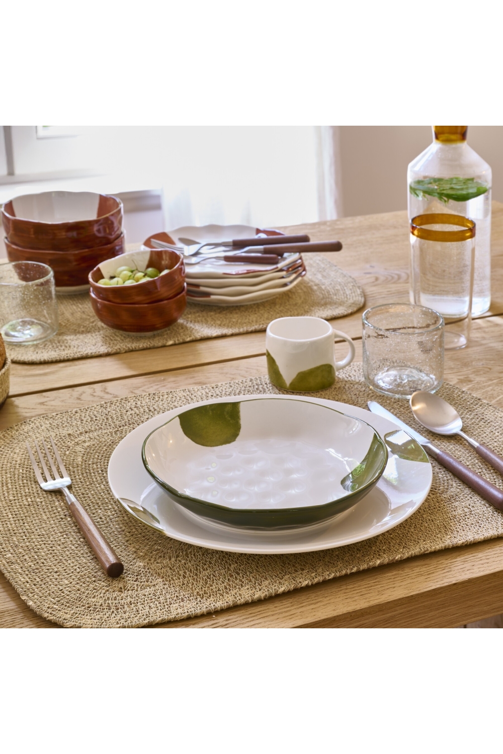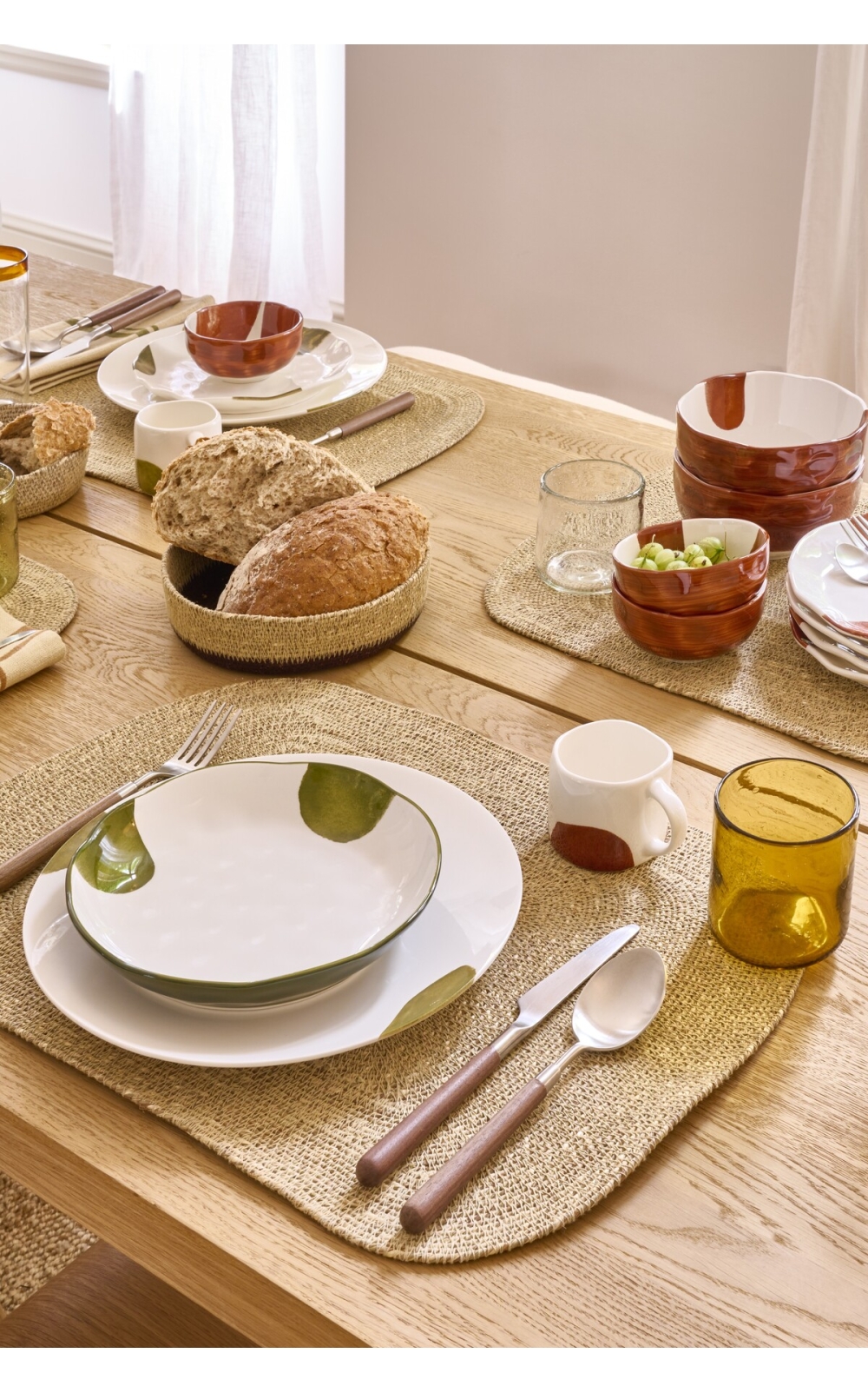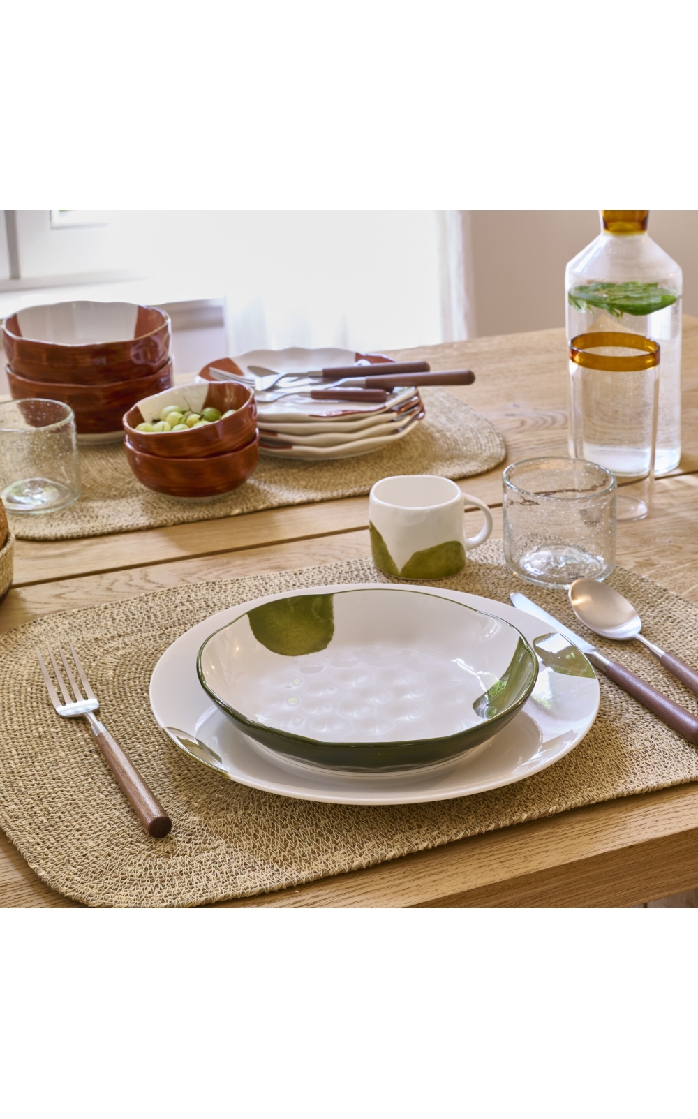 Ces assiettes plate à dîner dans des tons naturels de vert, apporteront une touche originale et chaleureuse à votre table.