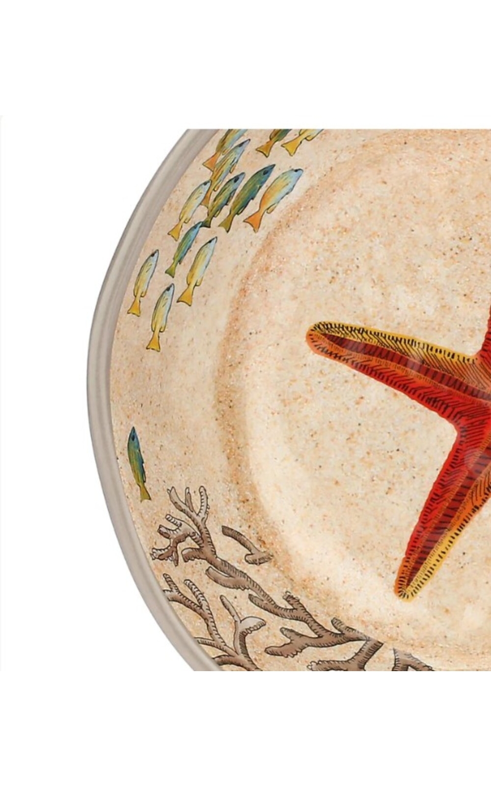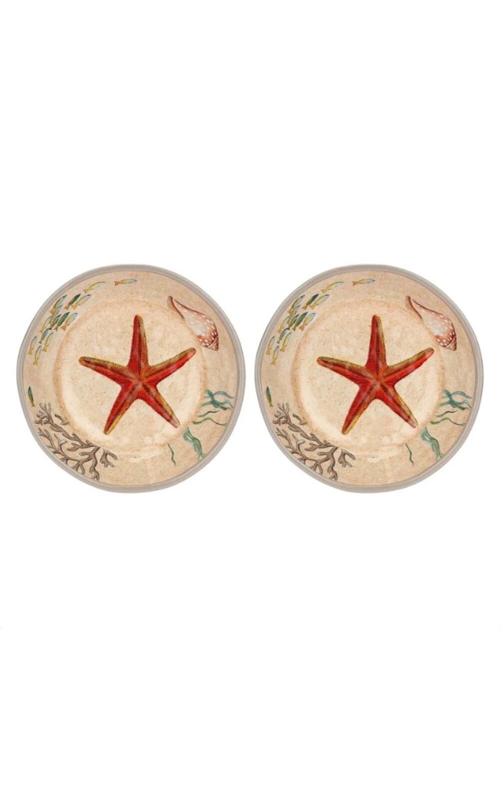 Apportez couleur et élégance à vos repas avec ces assiettes creuses en mélamine de 19.5cm de diamétre, parfaites pour entrées, pates, soupe ou desserts. Leur décoration marine met en avant une splendide etoile de mer rouge, entourée de coraux délicatement illustrés, pour un rendu à la fois raffiné et chaleureux.