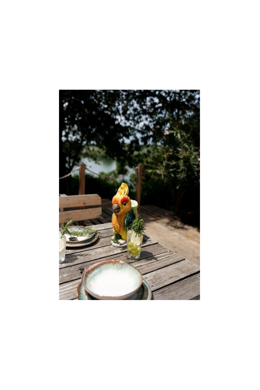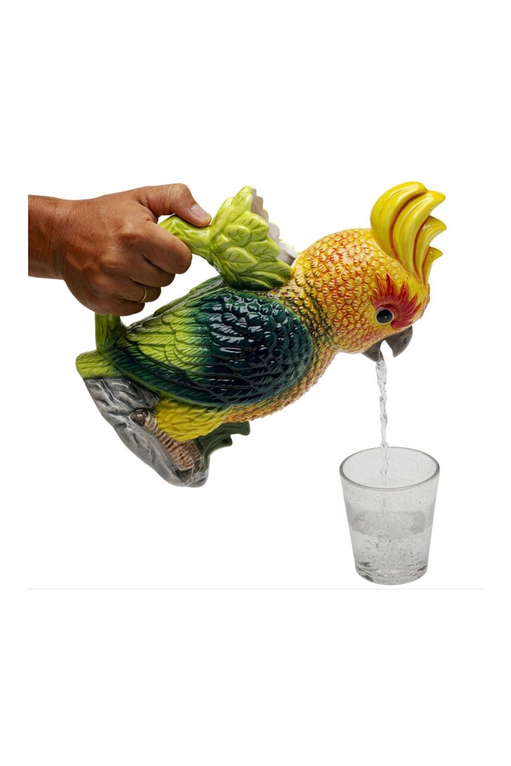 Apportez une touche d'exotisme à vos tables avec cette magnifique carafe en forme de perroquet, pleine de couleurs vives et vibrantes.