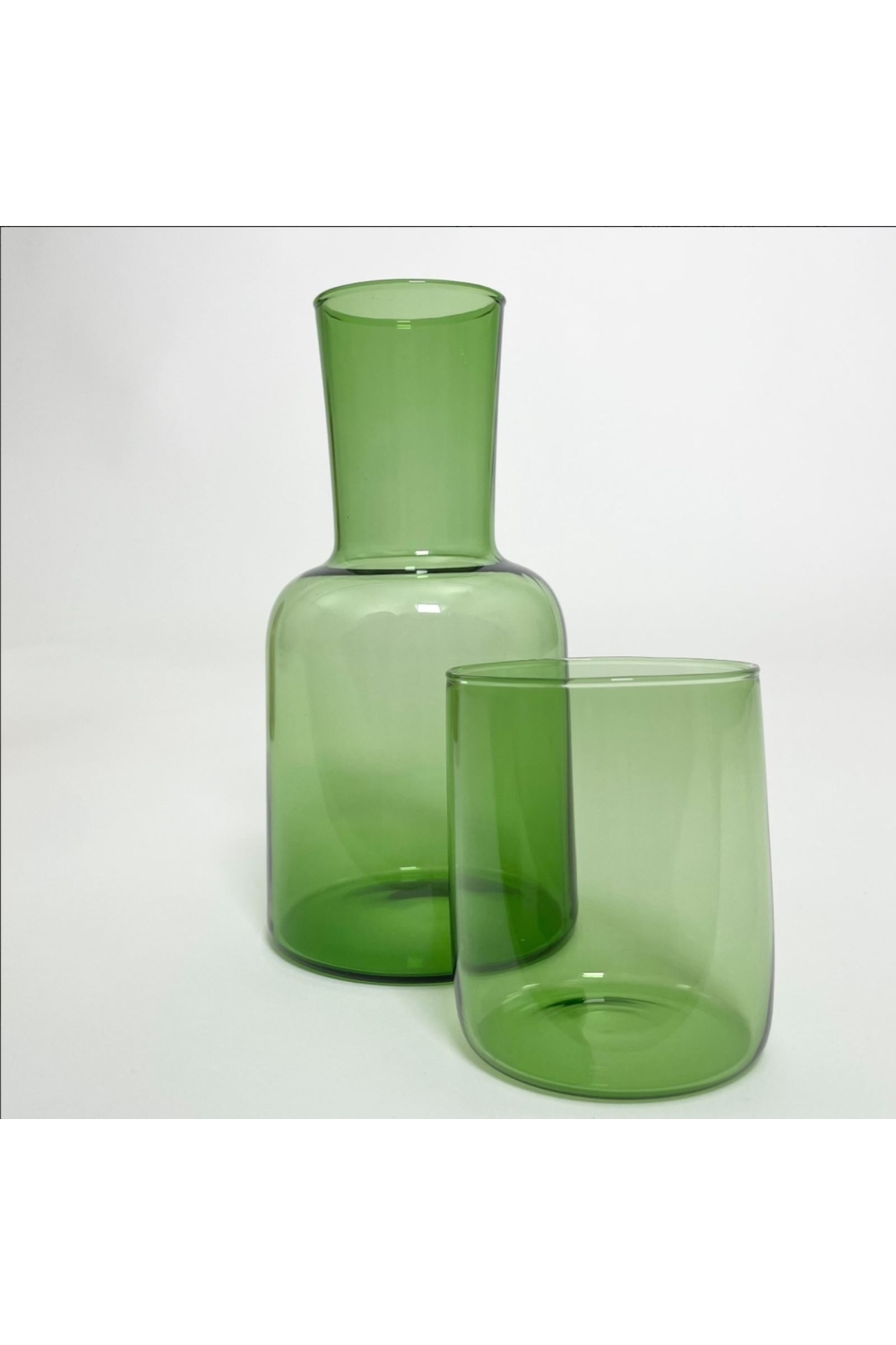 Voici un ensemble malin et esthétique : une carafe au design épuré accompagnée de son verre assorti, qui s’emboîte parfaitement sur le dessus. Fabriqué en verre teinté, ce duo coloré et élégant trouvera naturellement sa place aussi bien sur une table de nuit, qu’à côté d’un bout de canapé pour vos soirées films.