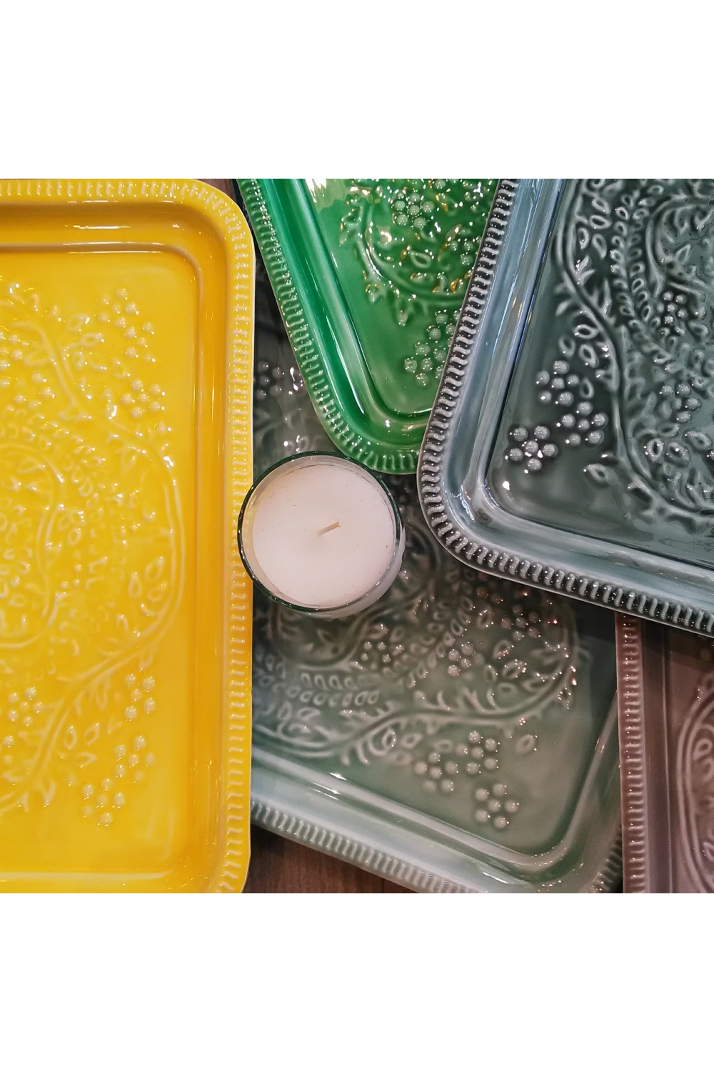 PLATEAU RECTANGLE BERBERE PM EN METAL EMAILLE GREEN BAZAR DELUXE