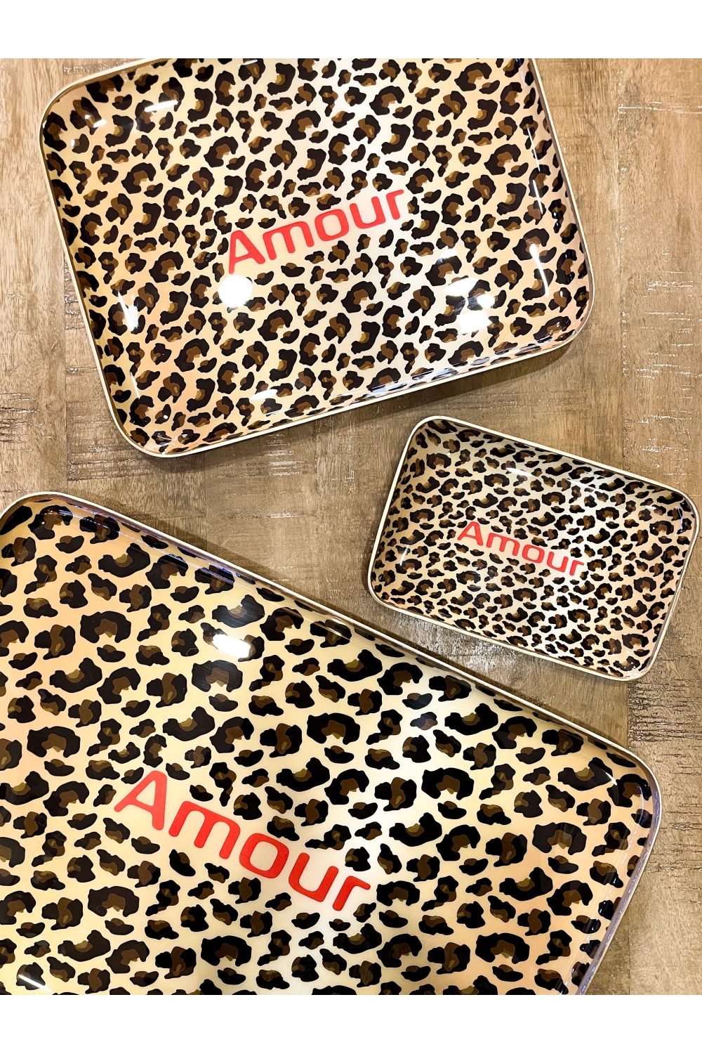 Affichez votre style avec le plateau Léopard Amour, un accessoire tendance et audacieux. Son motif léopard incontournable cette année en déco et en textile, est sublimé par l'inscription "AMOUR" en rouge vif, pour un contraste saisissant.