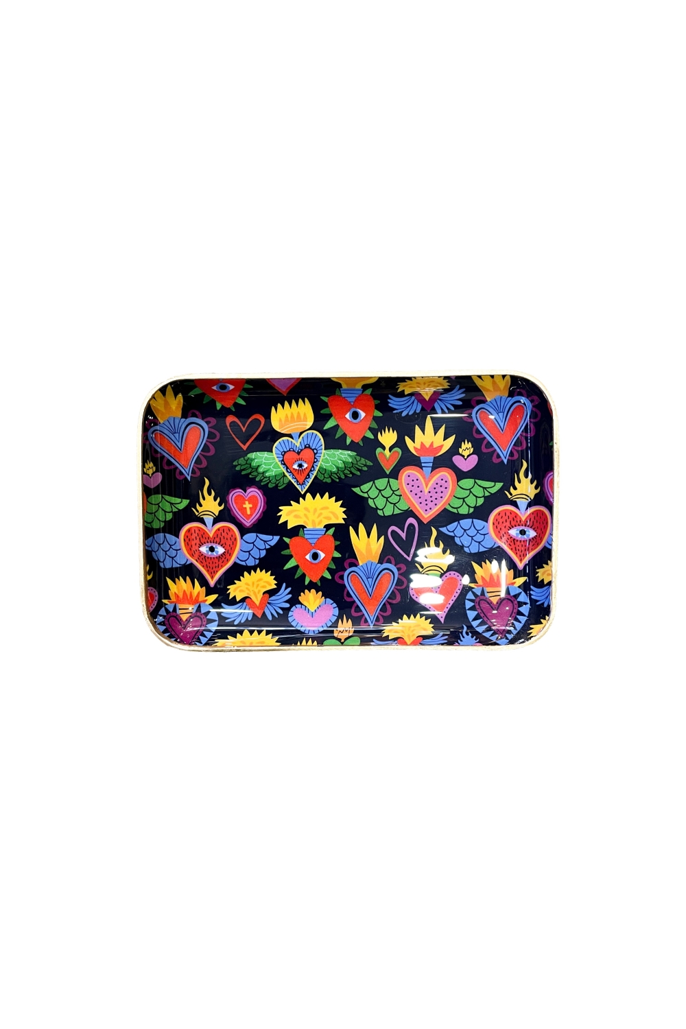 Apportez de la joie et des couleurs dans votre interieur avec le plateau porte-bonheur. Son fond noir élégant met en valeur une multitude de gris-gris colorés, comme des coeurs et des yeux porte-bonheur, qui insufflent une énergie positive à chaque espace.