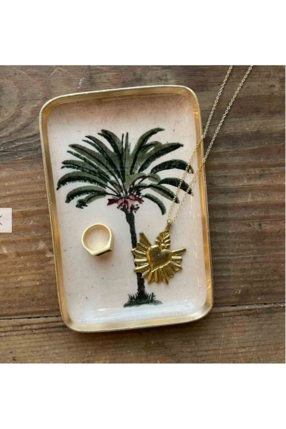 Petit plateau rectangulaire "Palmier" en aluminium émaillé par Boncoeurs.