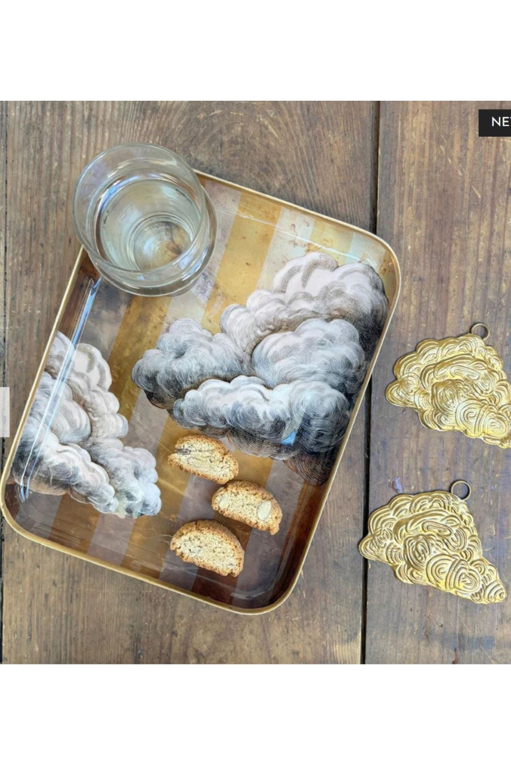 Plateau rectangulaire 24,5cm x 19 cm en aluminium émaillé - imprimé "Nuage".