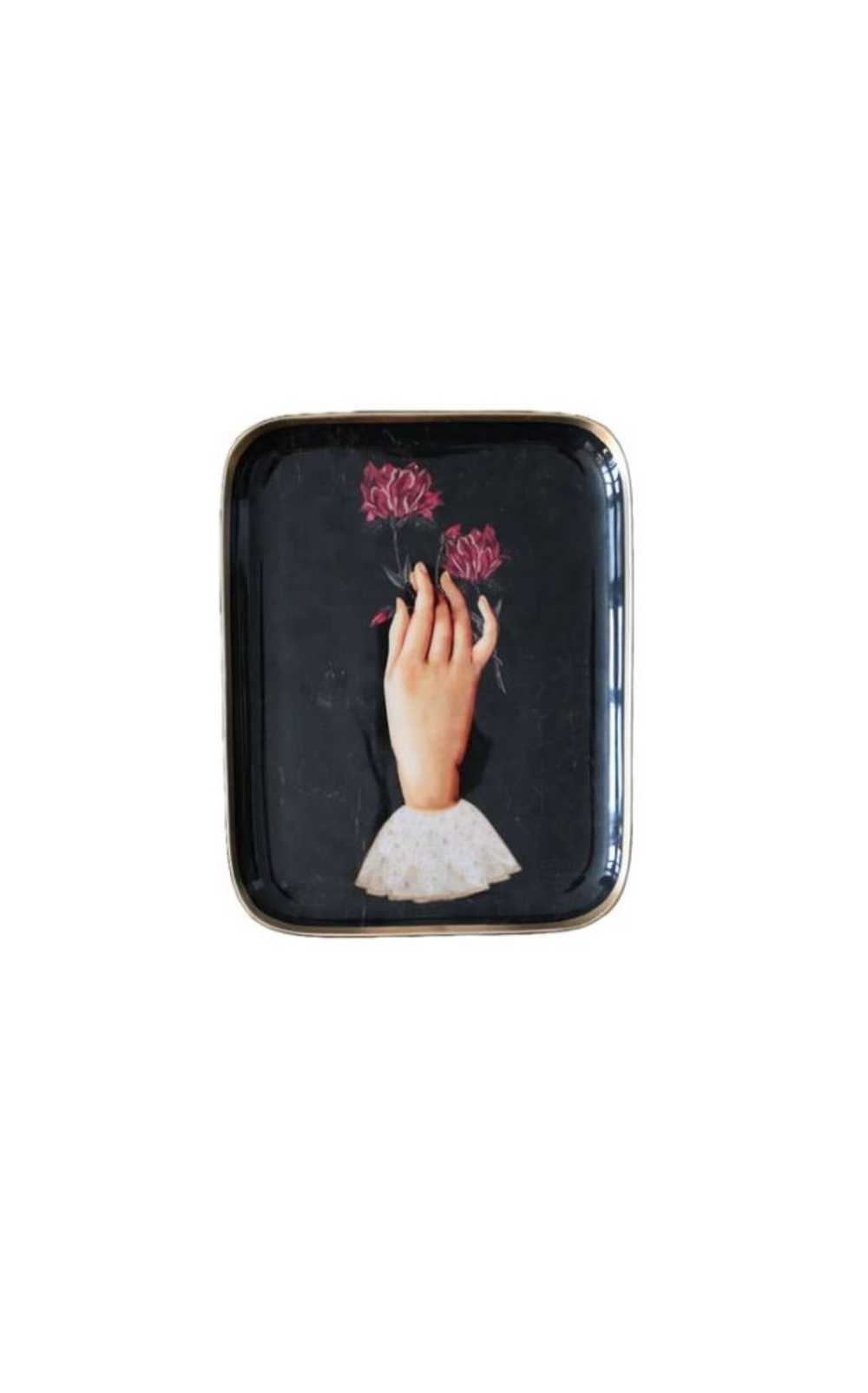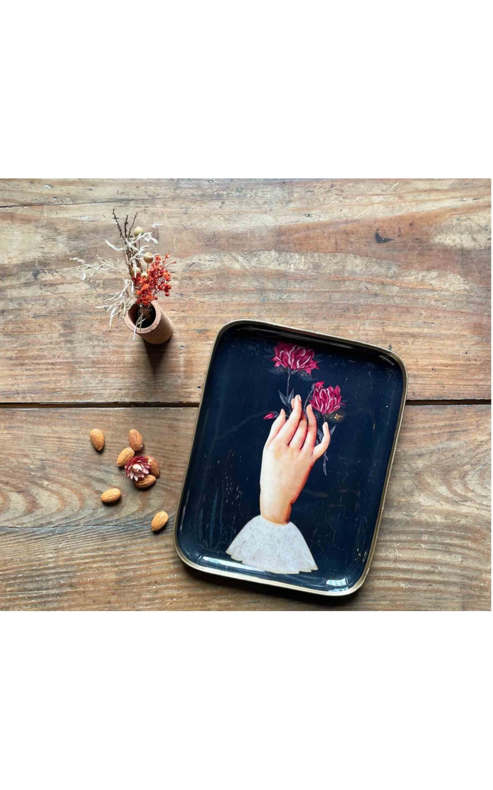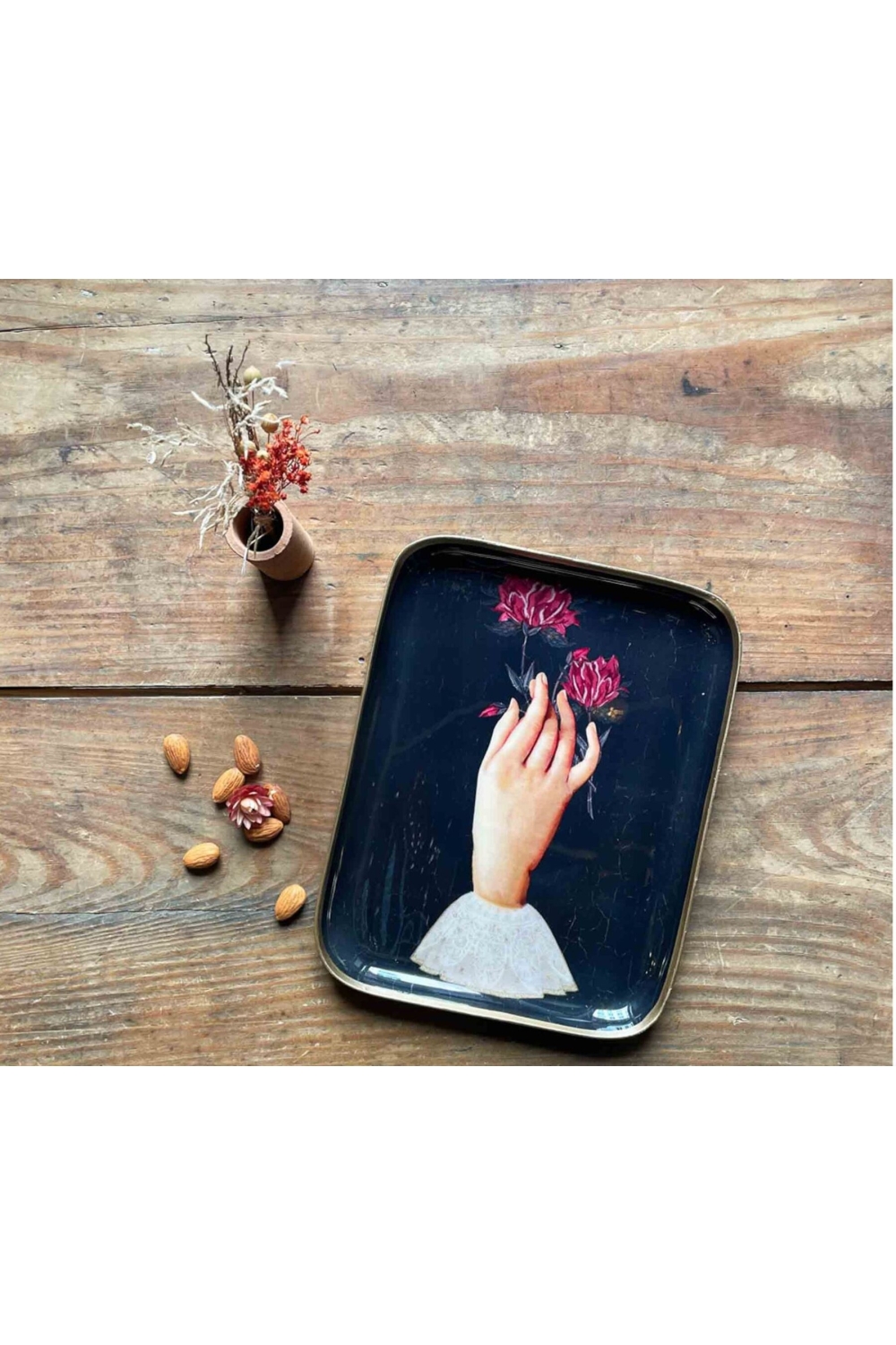 Plateau rectangulaire 24,5cm x 19 cm en aluminium émaillé - imprimé "Flore"
