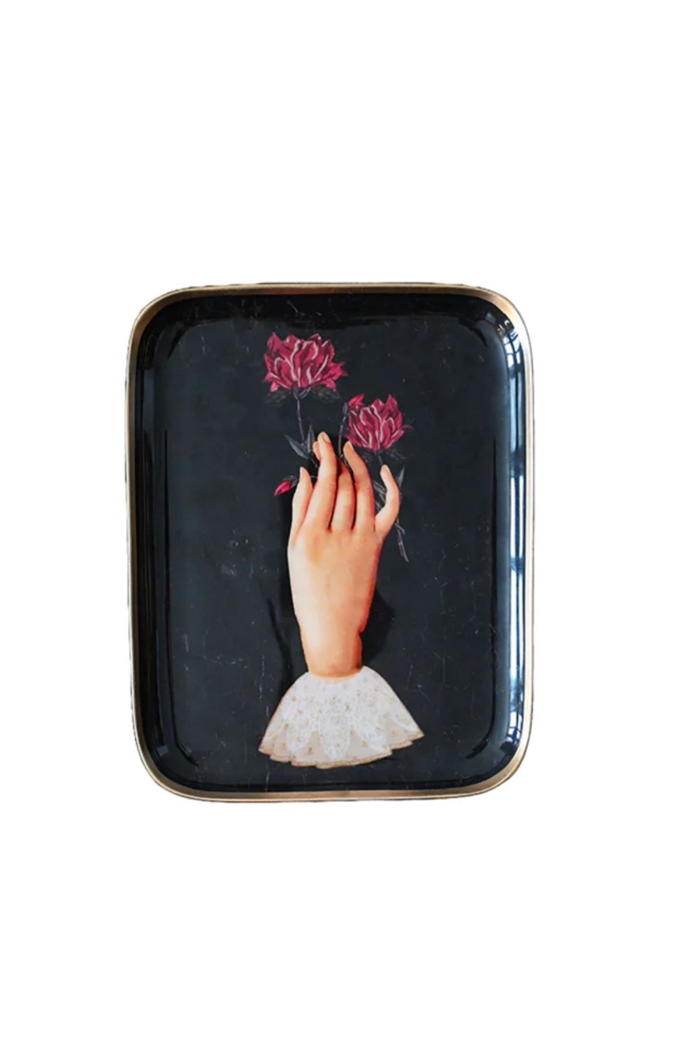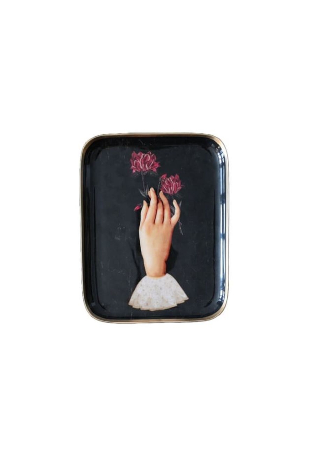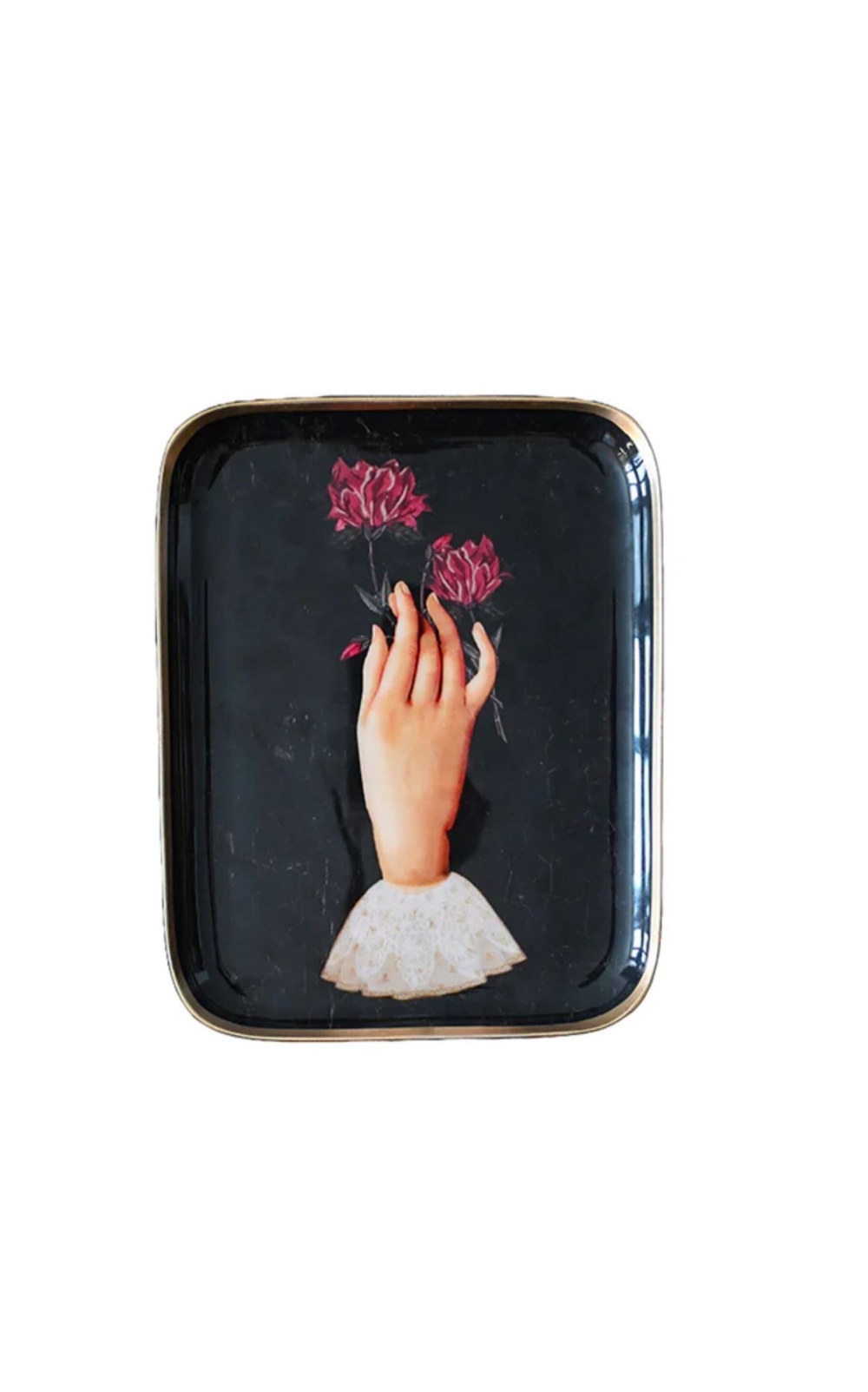 Plateau rectangulaire 24,5cm x 19 cm en aluminium émaillé - imprimé "Flore"