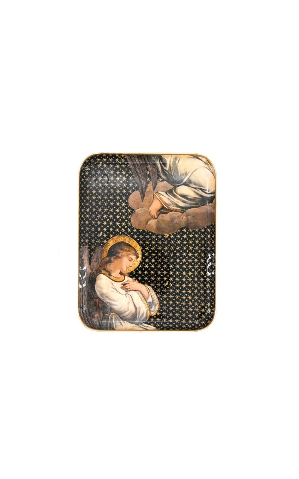 Plateau rectangulaire 24,5cm x 19 cm en aluminium émaillé - imprimé "Ange", Boncoeur.