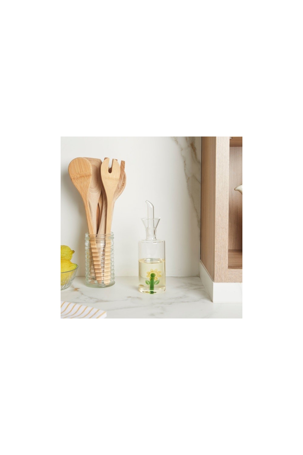 - Design original, un détail unique à l'intérieur du huillier ajoute élégance et sophistication à votre cuisine. Il vous permet aussi de repérer facilement l'huile ou le vinaigre de votre choix.