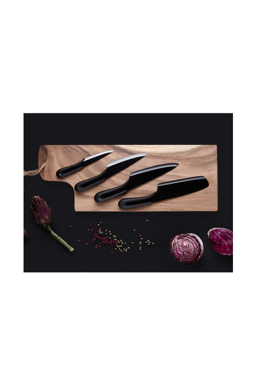 Matériel : Lame en céramique zircone et obsidienne. Manche en plastique noir antidérapant avec revêtement en caoutchouc thermoplastique.