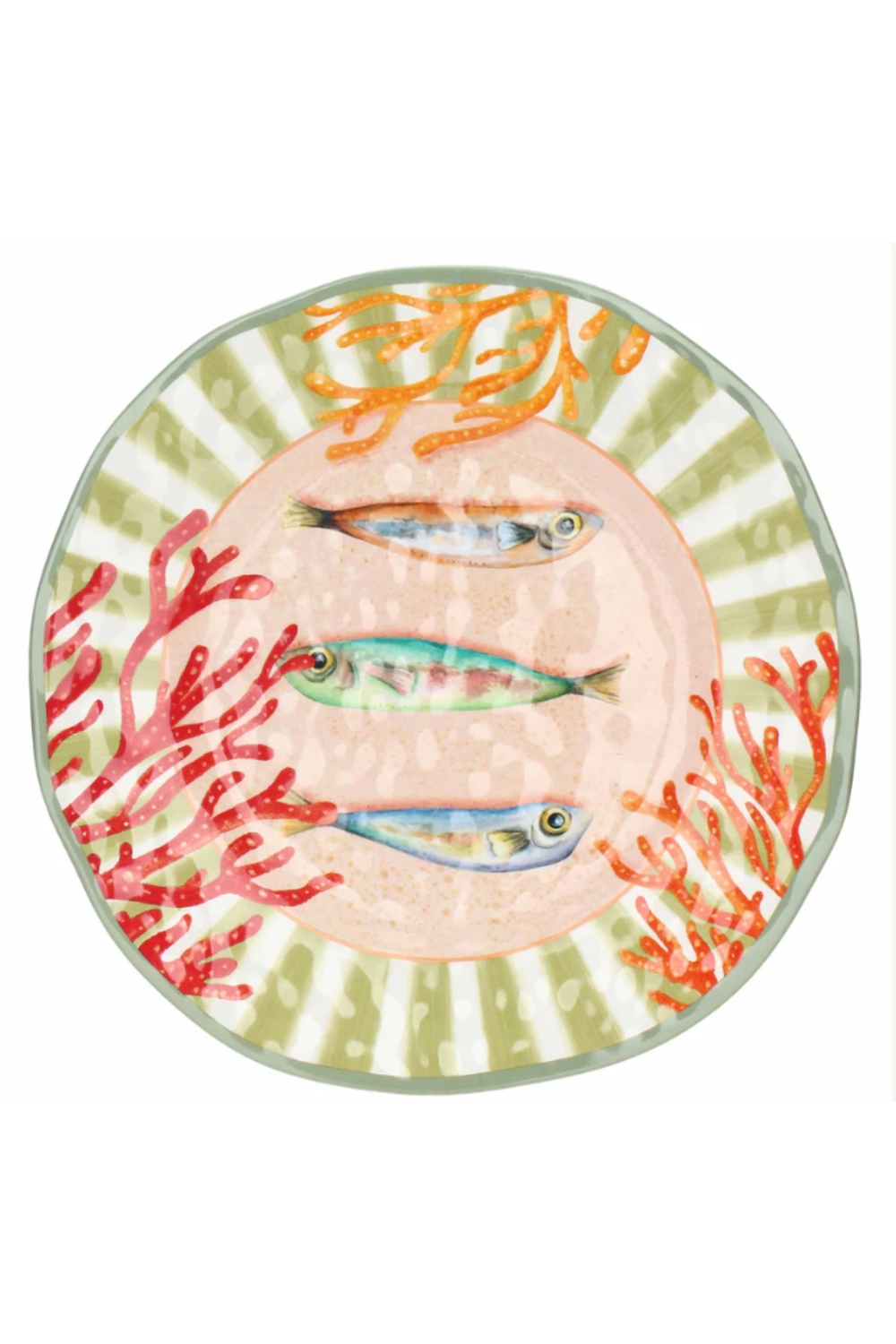 Cette assiette plate élégante en mélamine de 27 cm de diamétre, ornéé d'un dessin raffiné de coraux et de poissons, est proposée en set de deux assiettes identiques.Inspirée de l'univers marin, elle apporte fraîcheur, couleur et raffinenent à toutes vos tables.