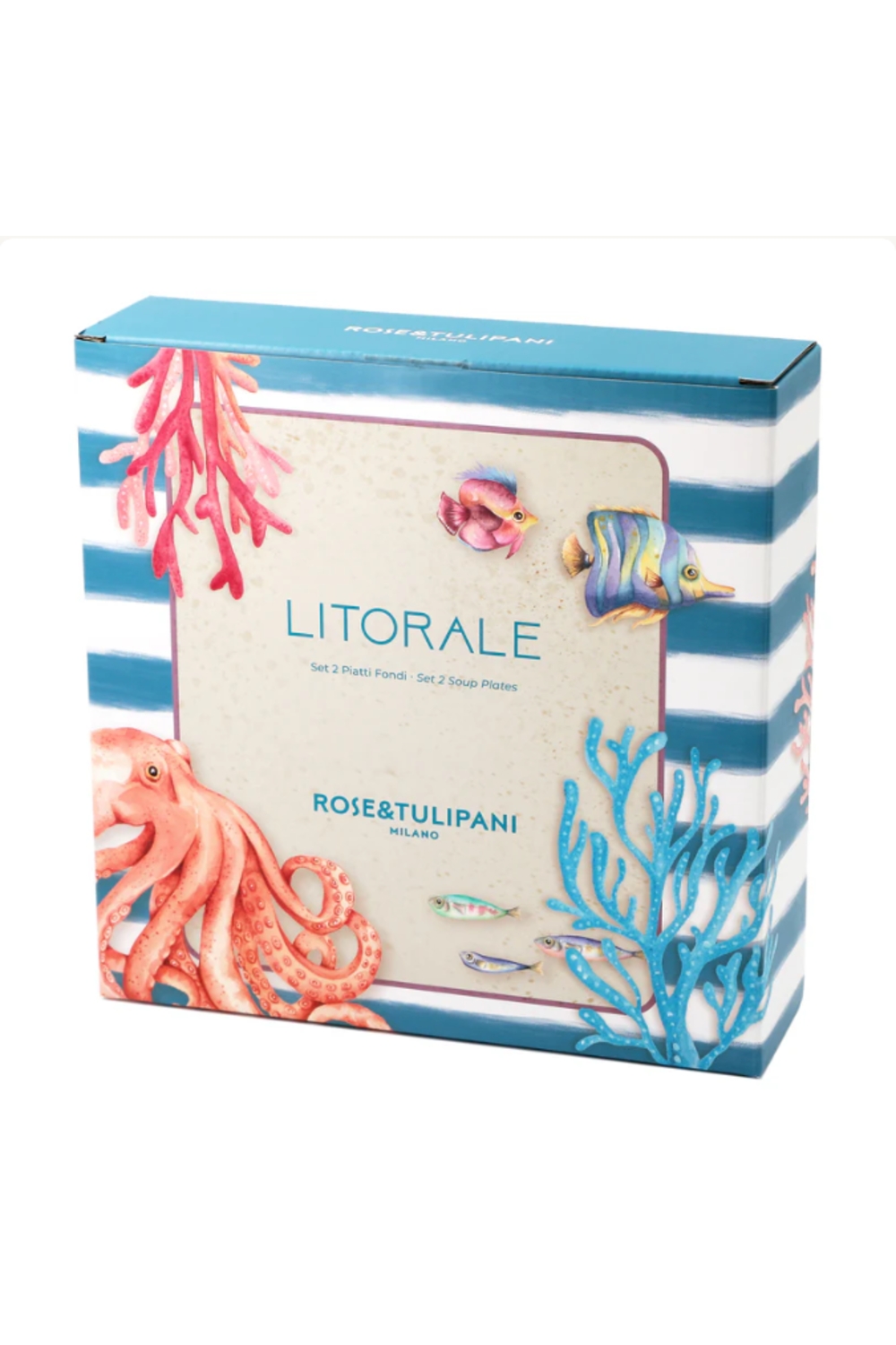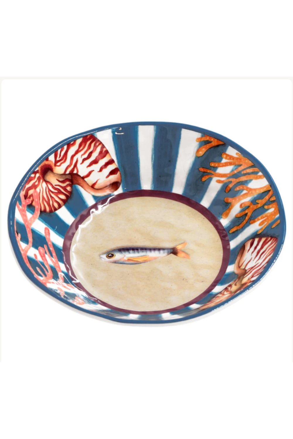 Apportez couleur et élégance à vos repas avec ces assiettes creuses en mélamine de 21 cm de diamétre, parfaites pour entrées, pates, soupe ou desserts. Leur décoration marine met en avant une jolie sardine, entourée de coraux délicatement illustrés, pour un rendu à la fois raffiné et chaleureux.