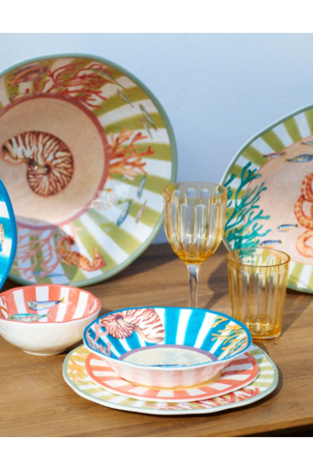 Conçu en Italie, ce plat reflète un savoir-faire artisanal et une attention minutieuse aux détails, faisant de lui un élément unique pour tous les amateurs d’univers marin.