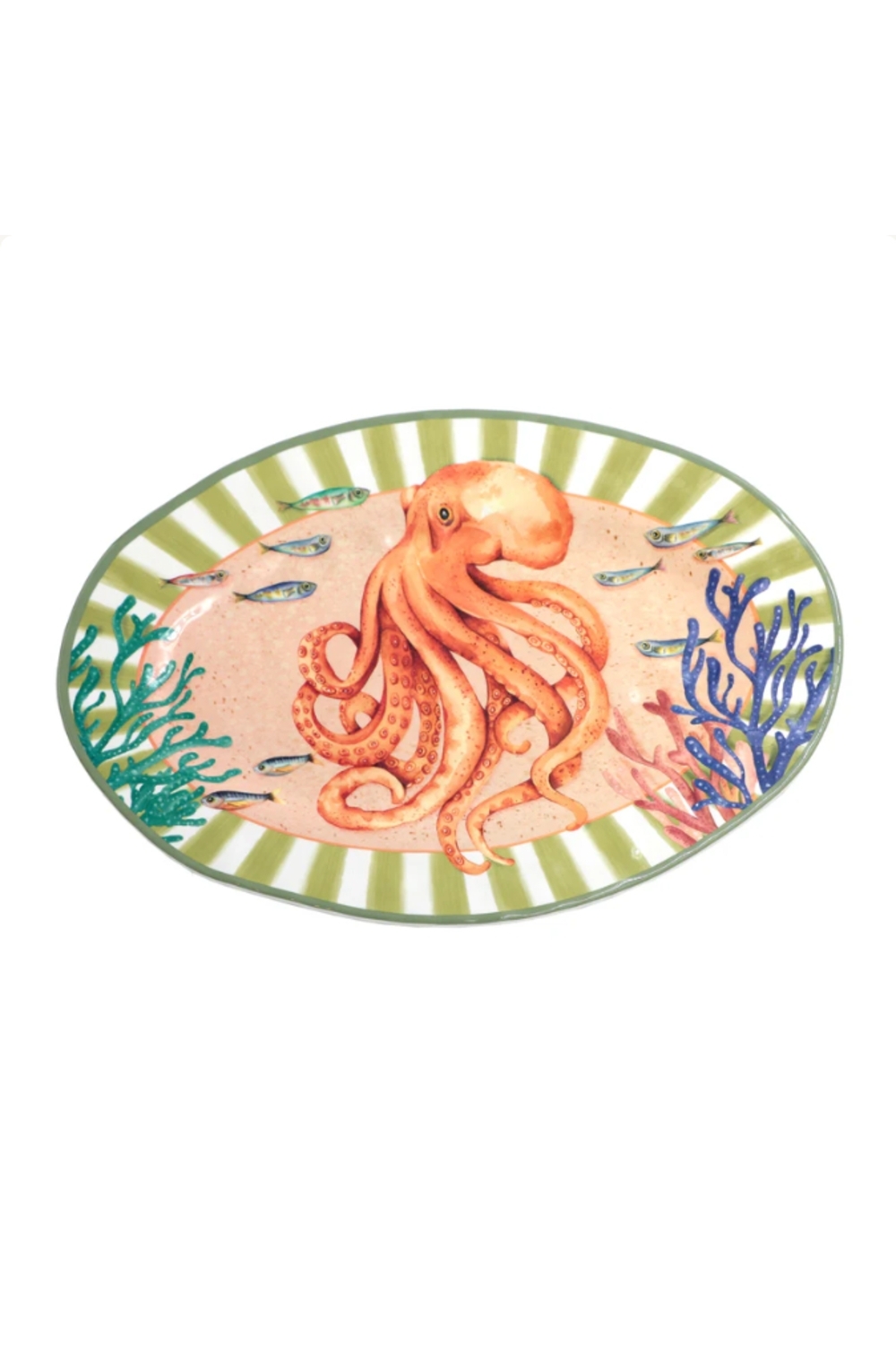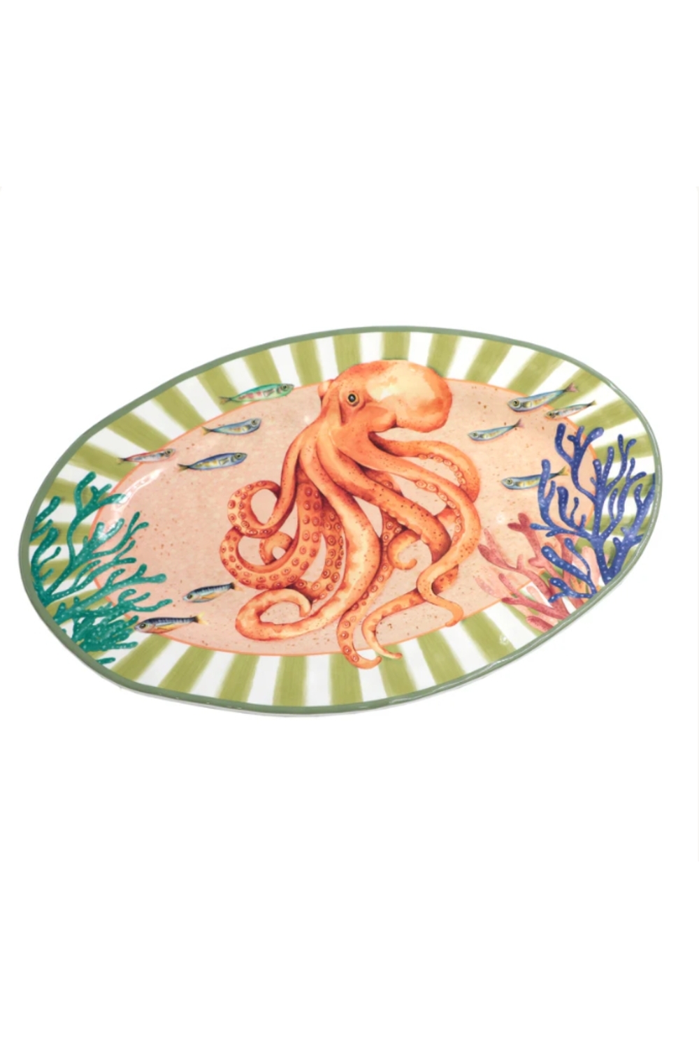 Conçu en Italie, ce plat reflète un savoir-faire artisanal et une attention minutieuse aux détails, faisant de lui un élément unique pour tous les amateurs d’univers marin.