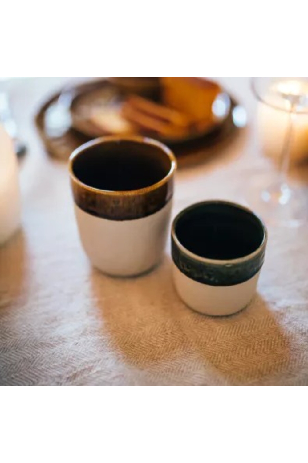 Le contraste entre l'aspect brut de la céramique à l'extérieur et l'émail réactif brillant à l'intérieur met en valeur chaque pièce et facilite le nettoyage.
