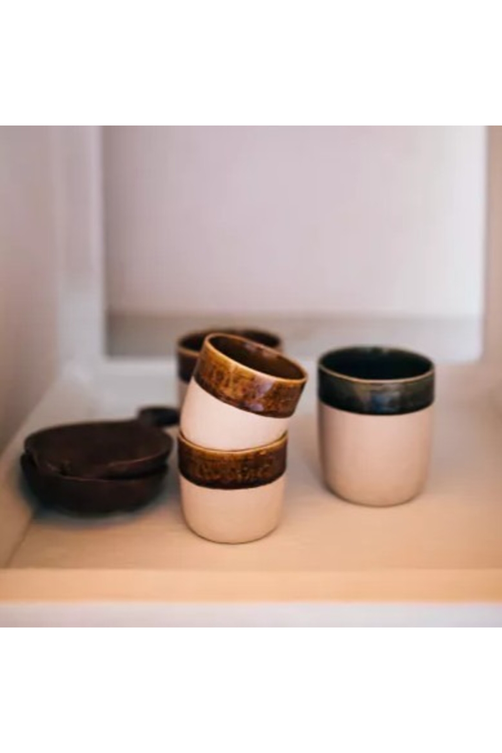 Le contraste entre l'aspect brut de la céramique à l'extérieur et l'émail réactif brillant à l'intérieur met en valeur chaque pièce et facilite le nettoyage.