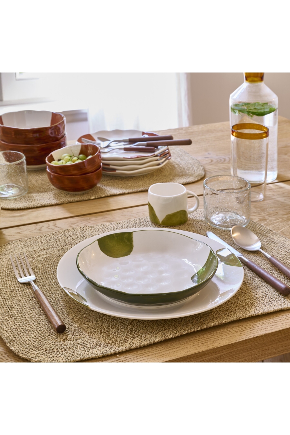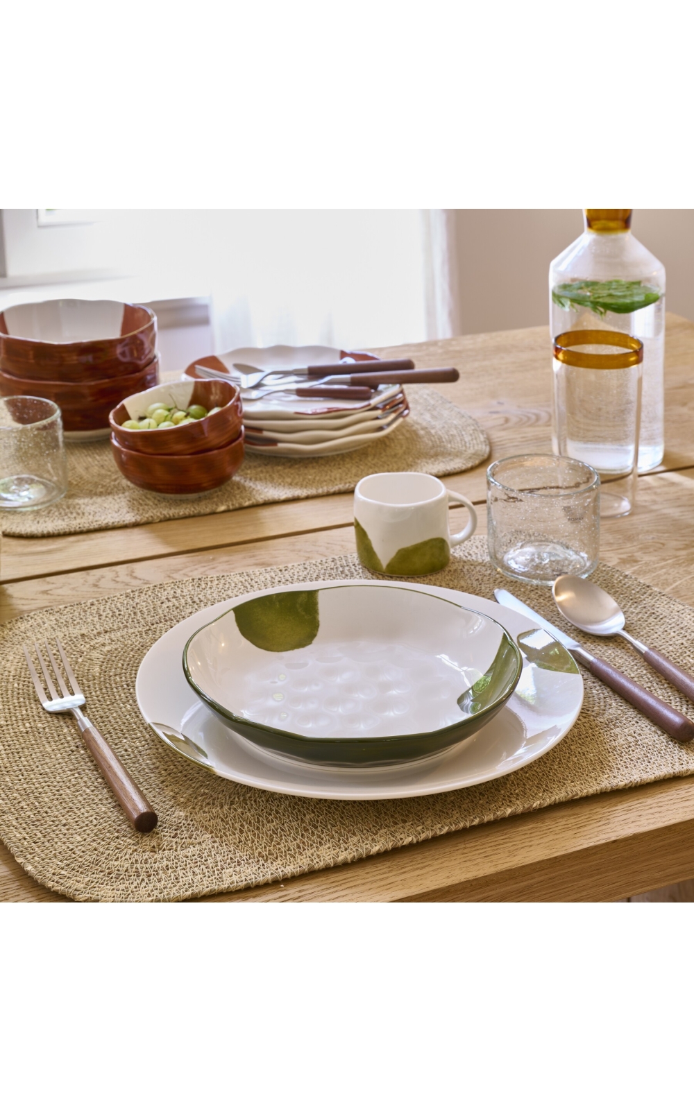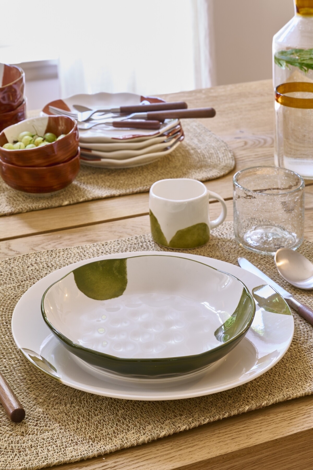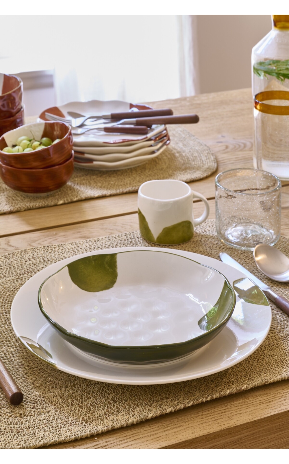 Ces mugs dans des tons naturels de vert terreux, apporteront une touche originale et chaleureuse à votre table.