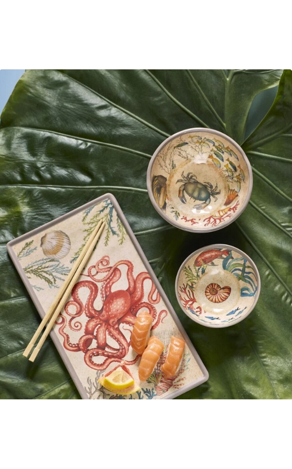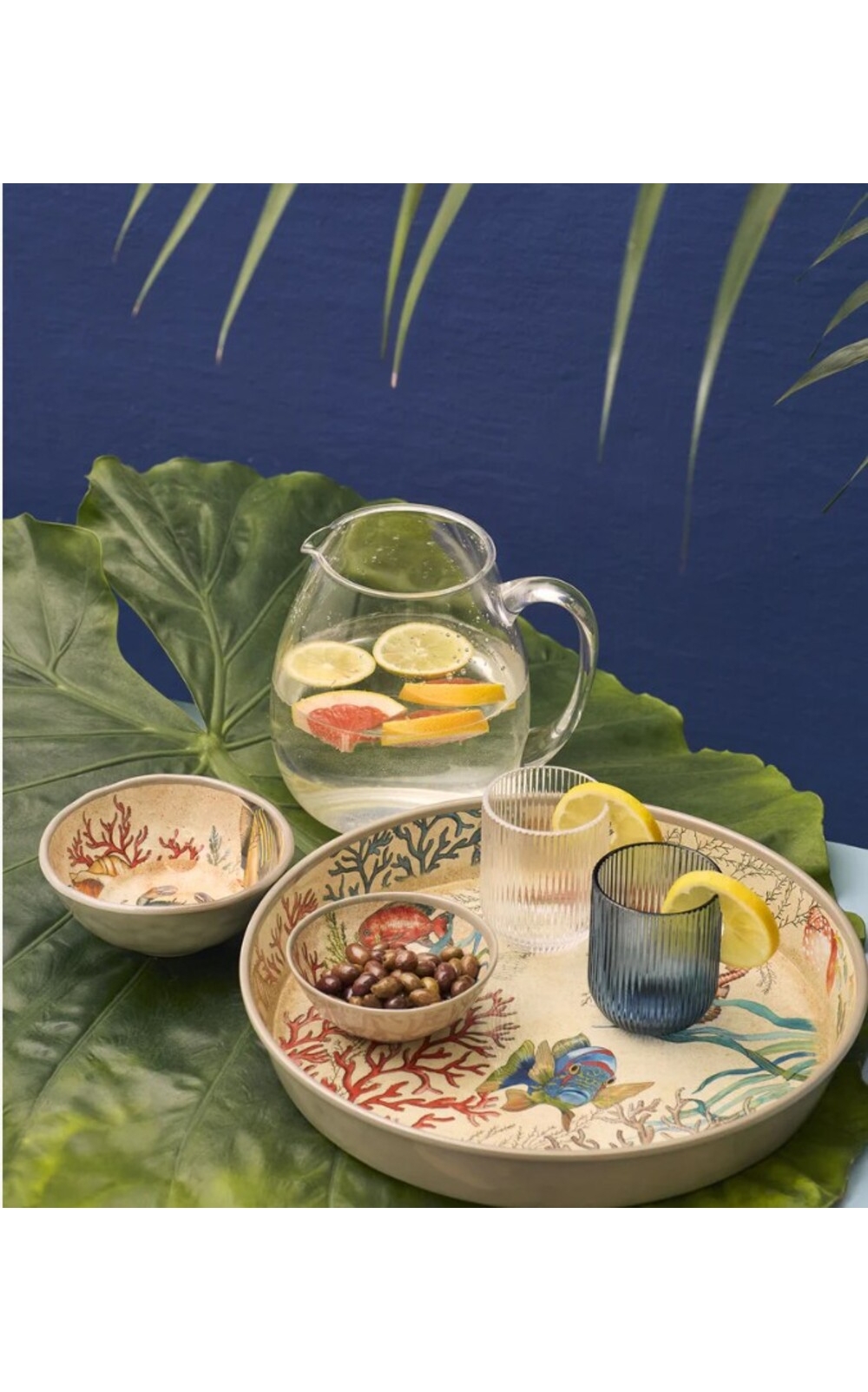 Leurs motifs inspirés des fonds marins apportent une touche poétique et élégante, évoquant la mer, les coraux et les poissons. Légers, résistants et faciles à entretenir, ils sont compatibles lave-vaisselle et idéaux pour un usage quotidien ou en extérieur, sur le bateau, au bord de la piscine ou en terrasse.
