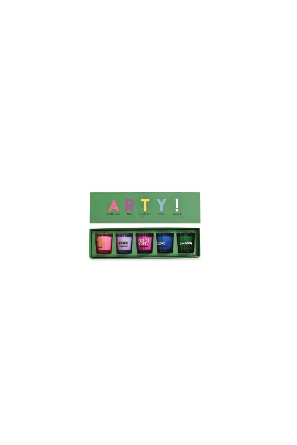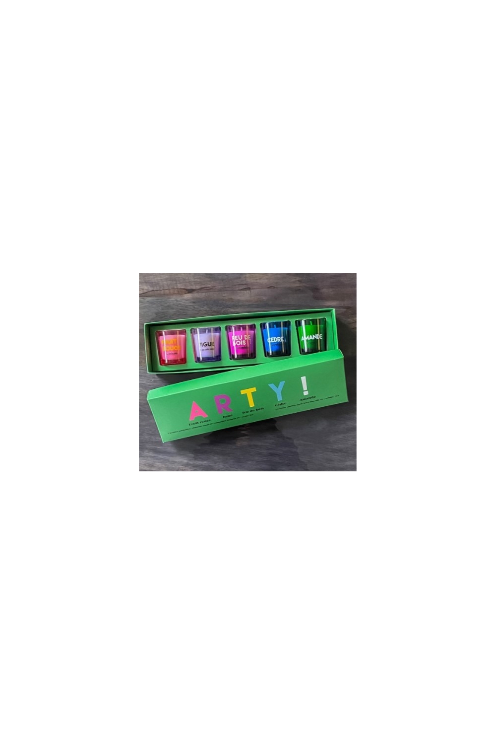 Coffret de 5 minis pots pour découvrir nos odeurs : fruit rouge, figue, feu de bois, cèdre, amande.
