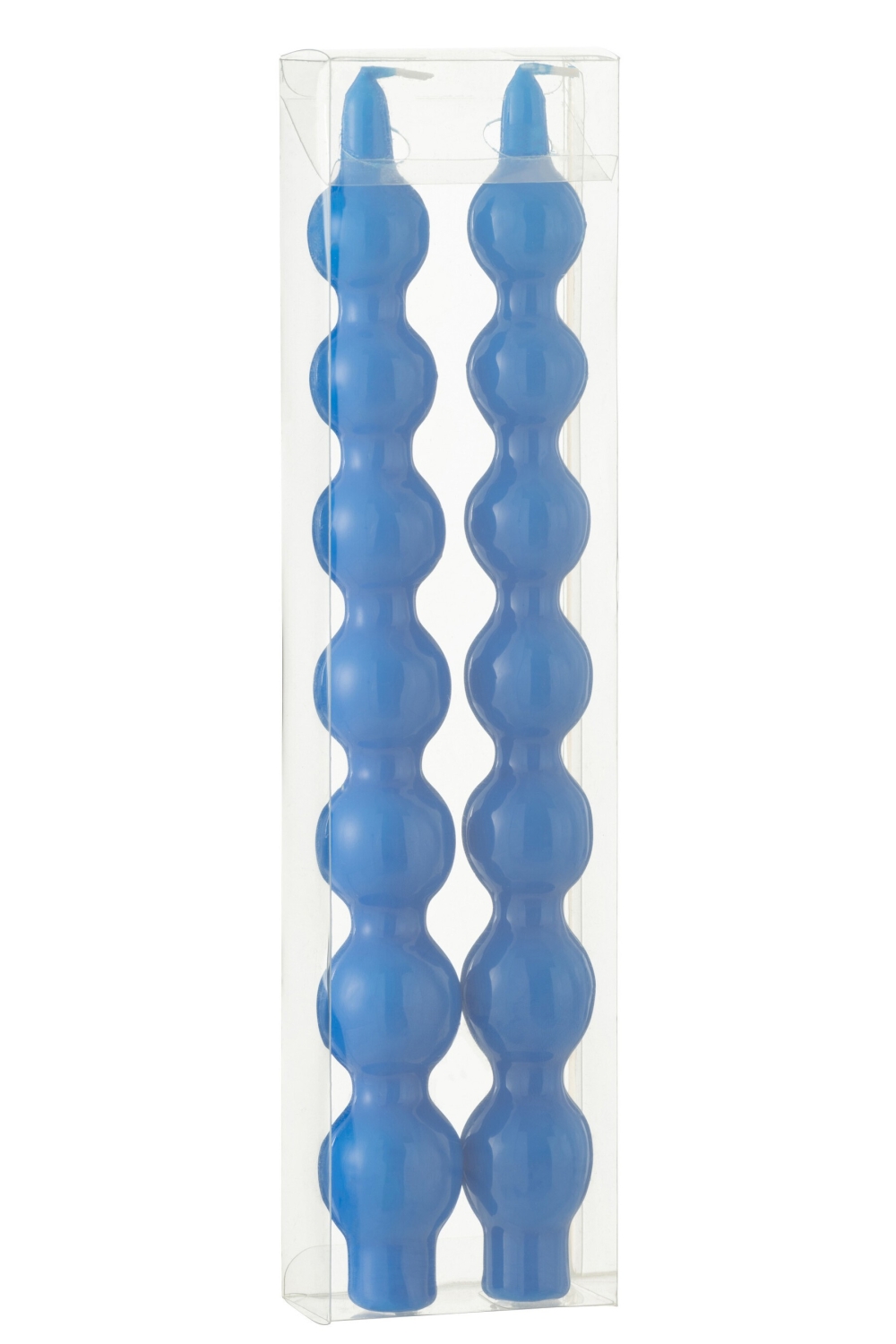 Ces bougies originales se distinguent par leur design unique et sculptural. Elles sont de couleur bleu et présentent une forme en enchaînement de sphères, créant un effet élégant et artistique.