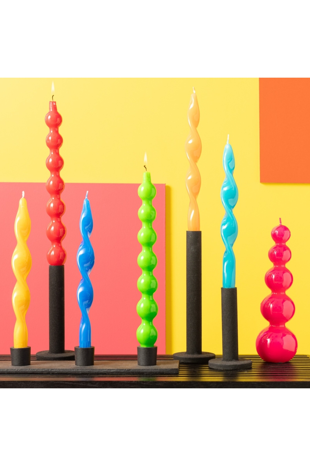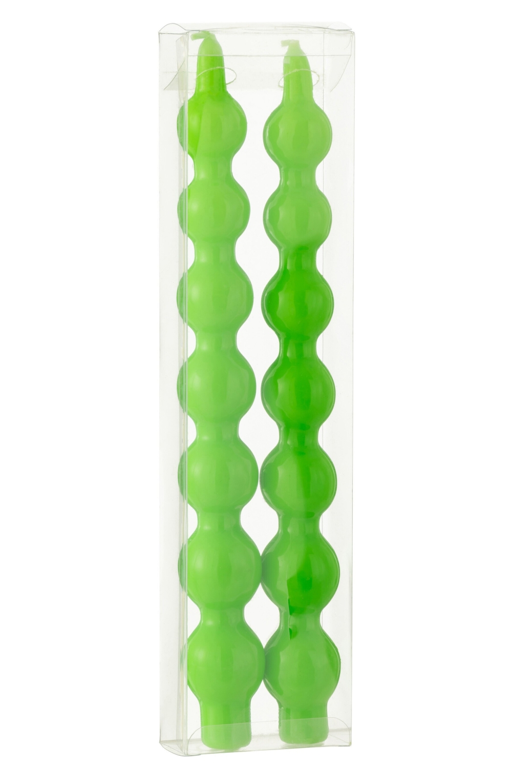 Ces bougies originales se distinguent par leur design unique et sculptural. Elles sont de couleur vert et présentent une forme en enchaînement de sphères, créant un effet élégant et artistique.