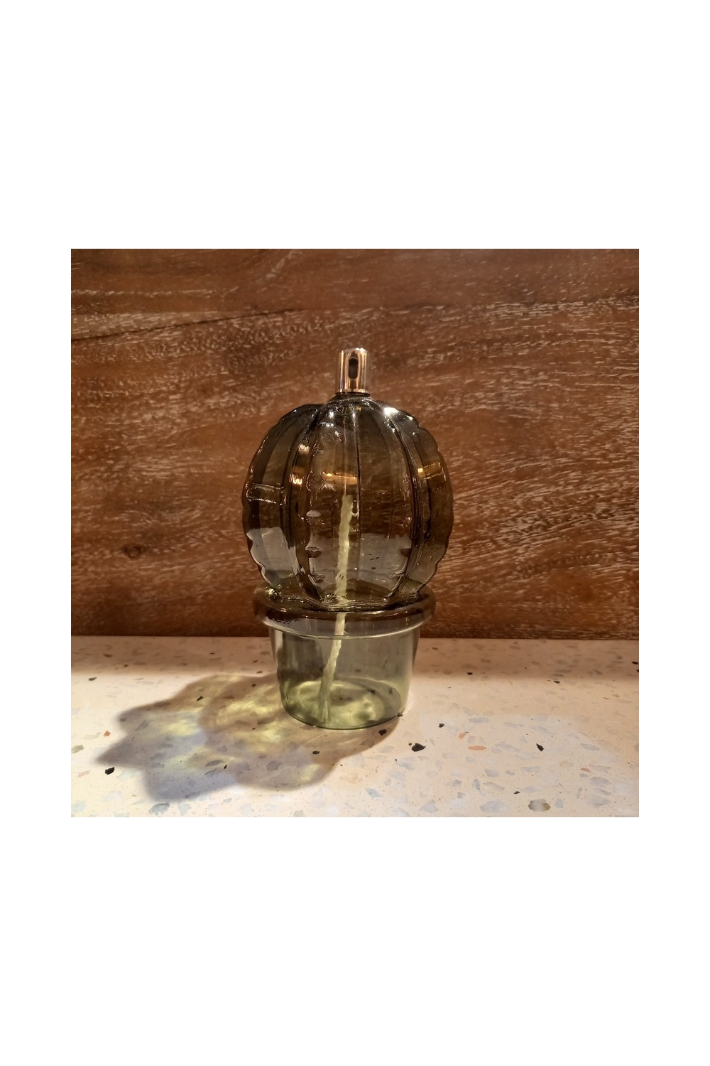 Ici, la lampe à huile M Cactus Boule aux tonalités vert bouteille vous séduira par son originalité !