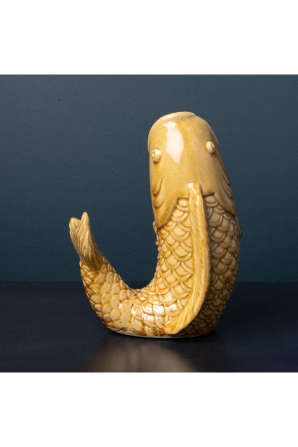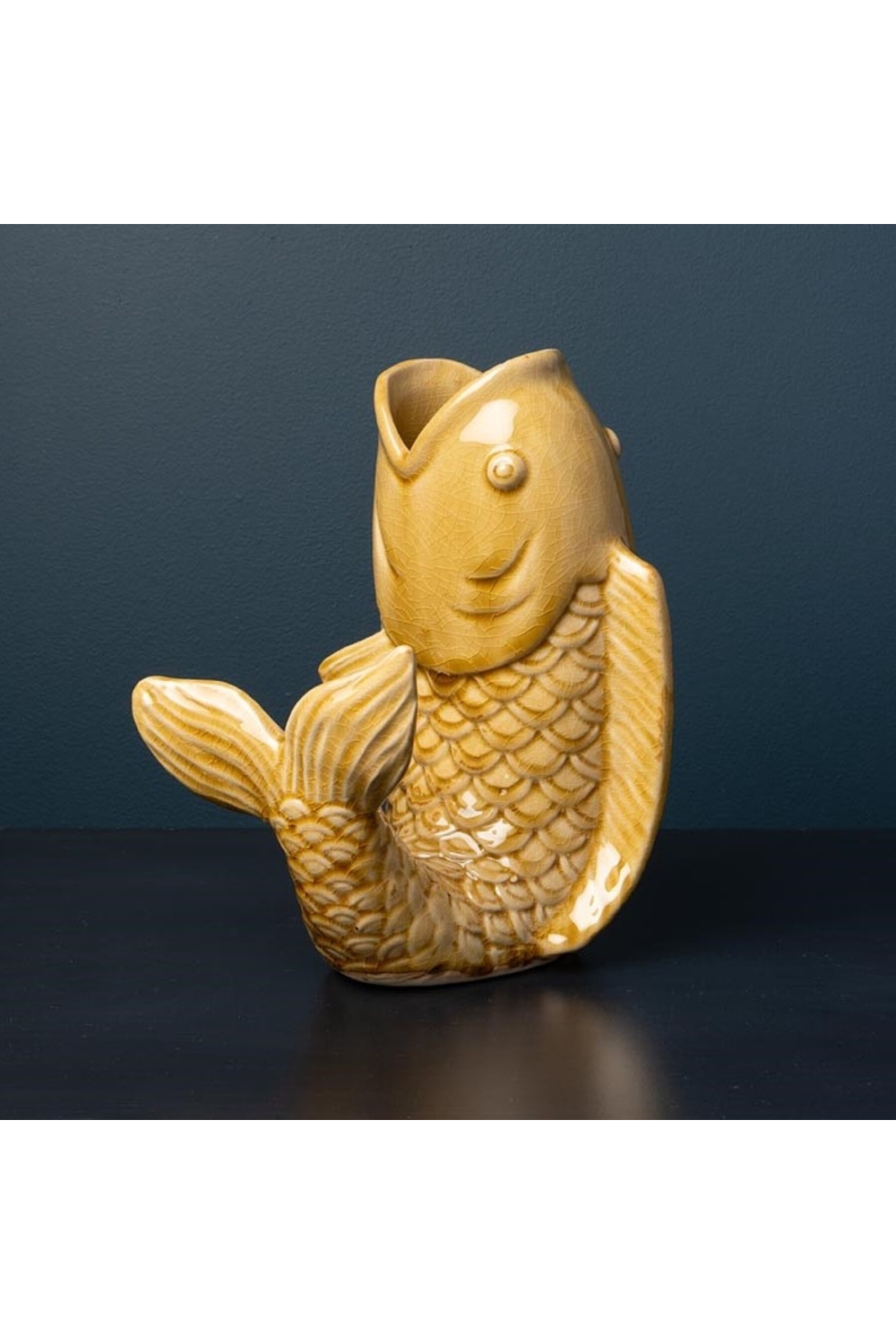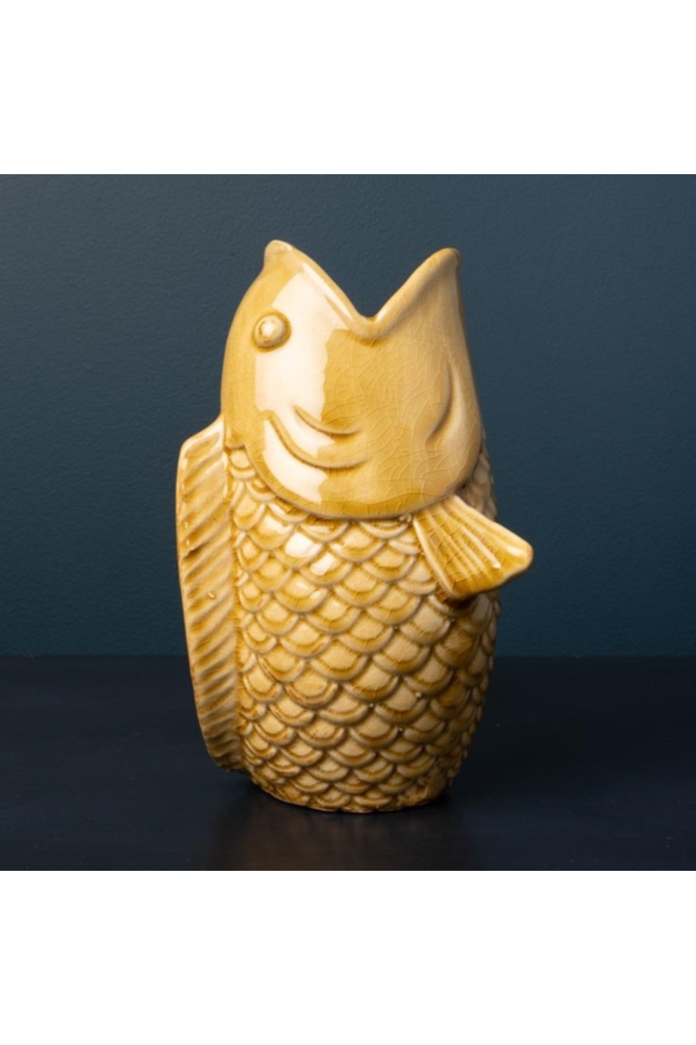 Vase poisson en grès moutarde - H30 x P27 x L17 cm