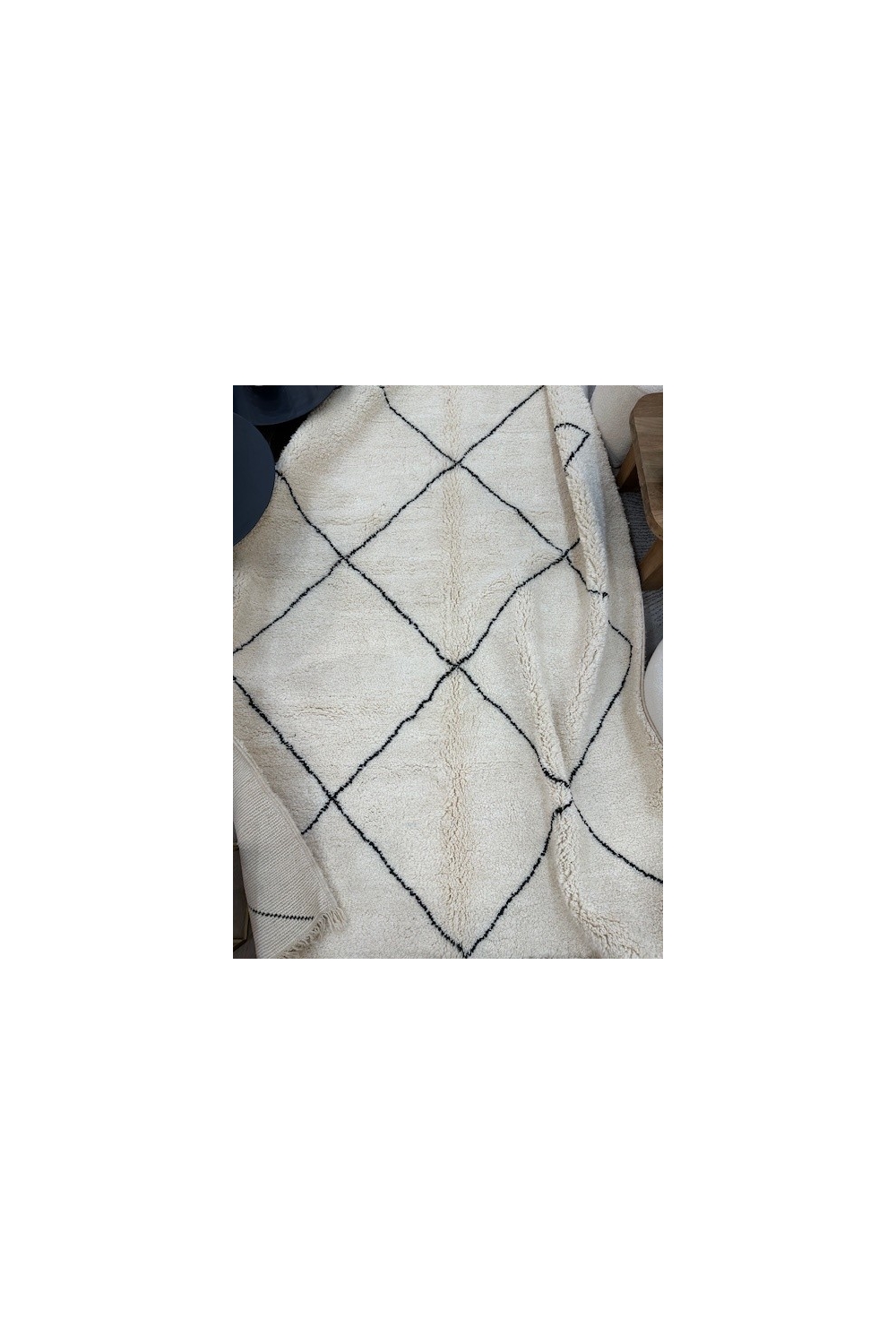TAPIS BERBERE BENI OURAIN ECRU GRANDS LOSANGES NOIRS 100% LAINE 300X200