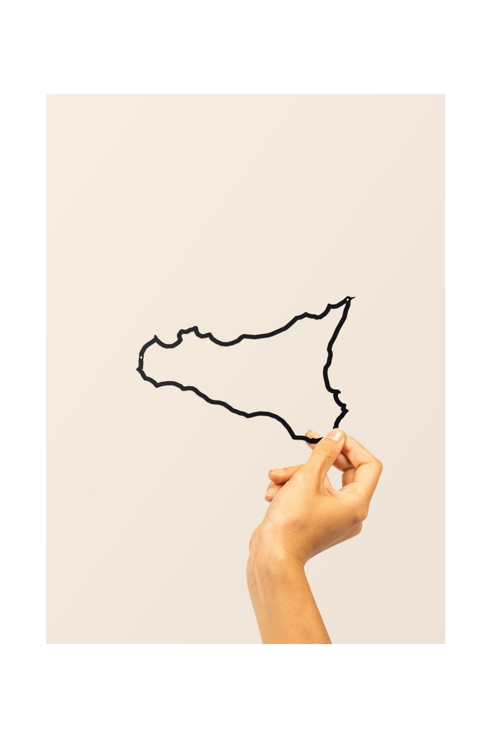 Ici, l'Île de Sicile laisse apparaître d'Ouest en Est et du Nord au Sud : Marsala, la capitale Palerme, Cefalù, le Mont Etna et Catane, et enfin Syracuse et Modica.