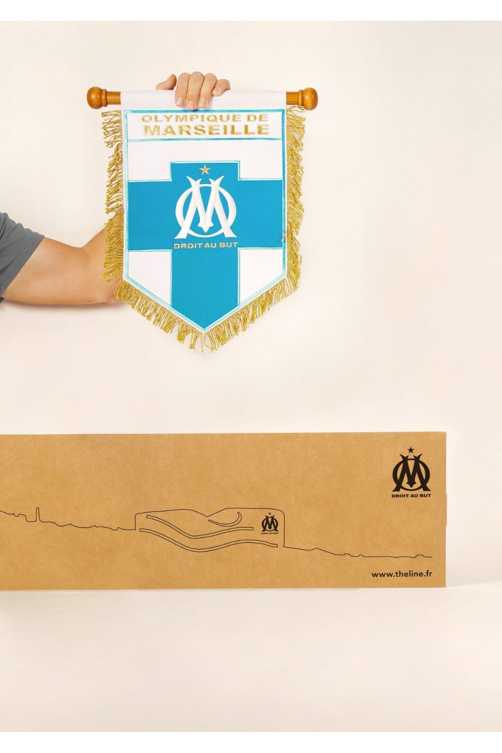 La collaboration entre The Line et l'Olympique de Marseille représente la fusion de deux passions : l'amour pour la ville de Marseille et l'engouement des Marseillais pour ce club légendaire qui célèbre ses 125 ans cette saison. Les produits issus de cette collaboration exclusive sont fabriqués à moins de 20 km de Marseille, en matériaux recyclés et recyclables, sans une seule goutte de plastique, le tout conditionné par une entreprise d'insertion.