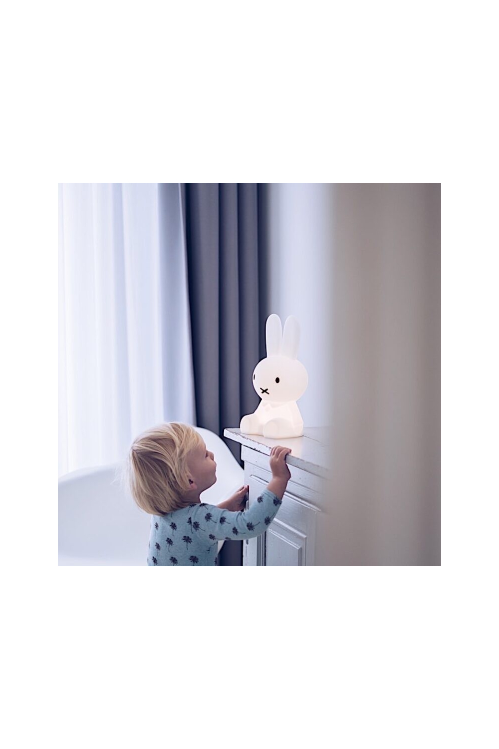 Pour l’aider à trouver le chemin du sommeil sereinement, n’hésitez pas à installer une veilleuse dans sa chambre. Bonne nouvelle : Miffy, son héroïne lapine préférée, se décline version veilleuse en petit format ou dans des modèles plus hauts (50 à 80 cm). La lampe légère, que l’on peut déplacer d’une main de pièce en pièce, est équipée d’un variateur à 6 degrés d’intensité pour moduler l’ambiance de la chambre à coucher. En prime : lorsque l’enfant grandit, la veilleuse Miffy devient un allié déco pour toute la maisonnée.