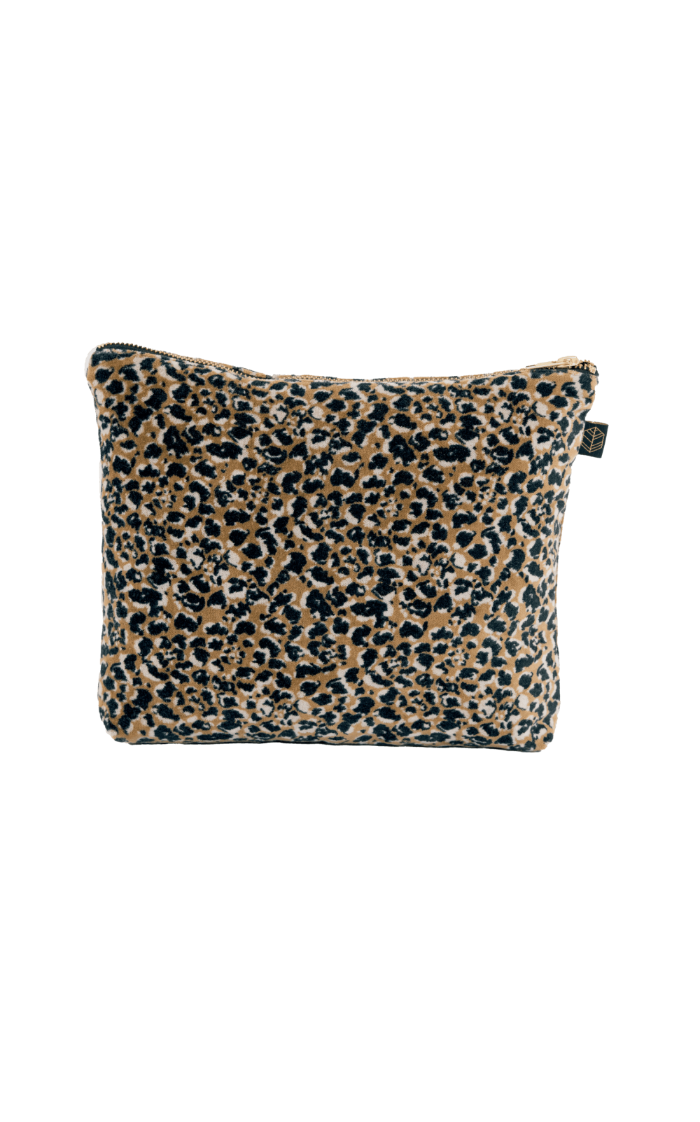 En velours de coton ultra doux, la trousse Gairo associe praticité et style avec son imprimé léopard tendance et sa face unie.