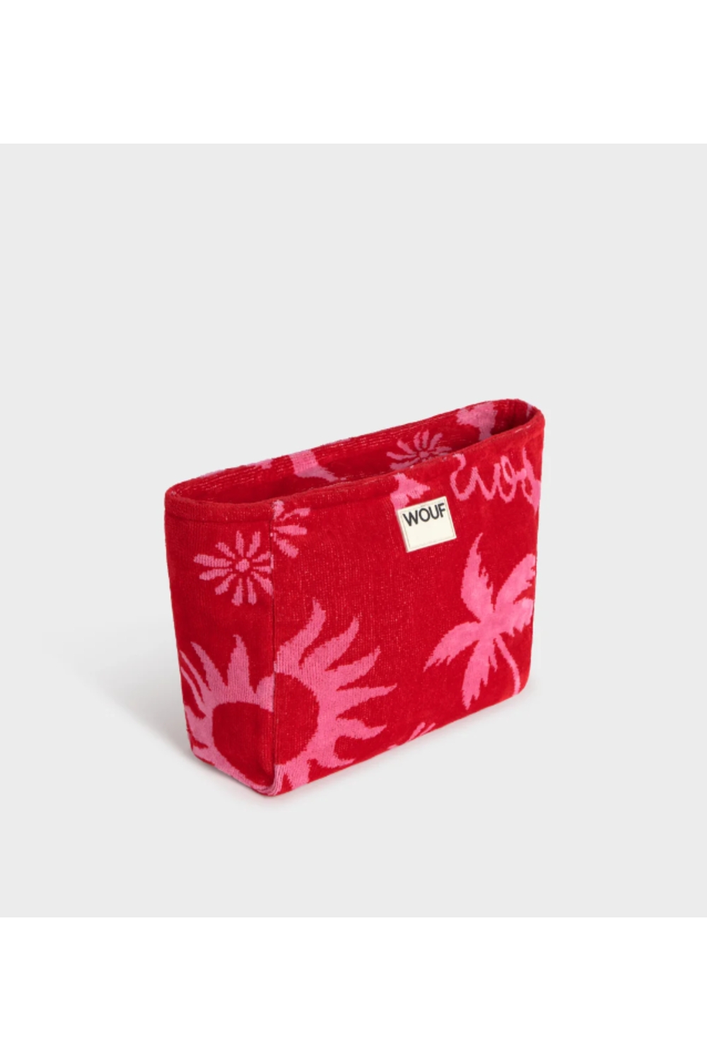 La trousse de toilette Tulum de Wouf, fabriquée en tissu éponge 100 % coton biologique, est parfaite pour emporter tous vos produits de toilette et de beauté. Son fond rouge vibran capte immédiatement le regard, tandis que ses motifs topicaux roses, dauphin fleurs exotiques et illustrations solaires, crée un effet visuel crée une irrésistible énergie estivale. Sa doublure intérieure déperlante et son large compartiment principal en font le compagnon idéal pour ranger et organiser crèmes solaires, shampoings et autres essentiels.
