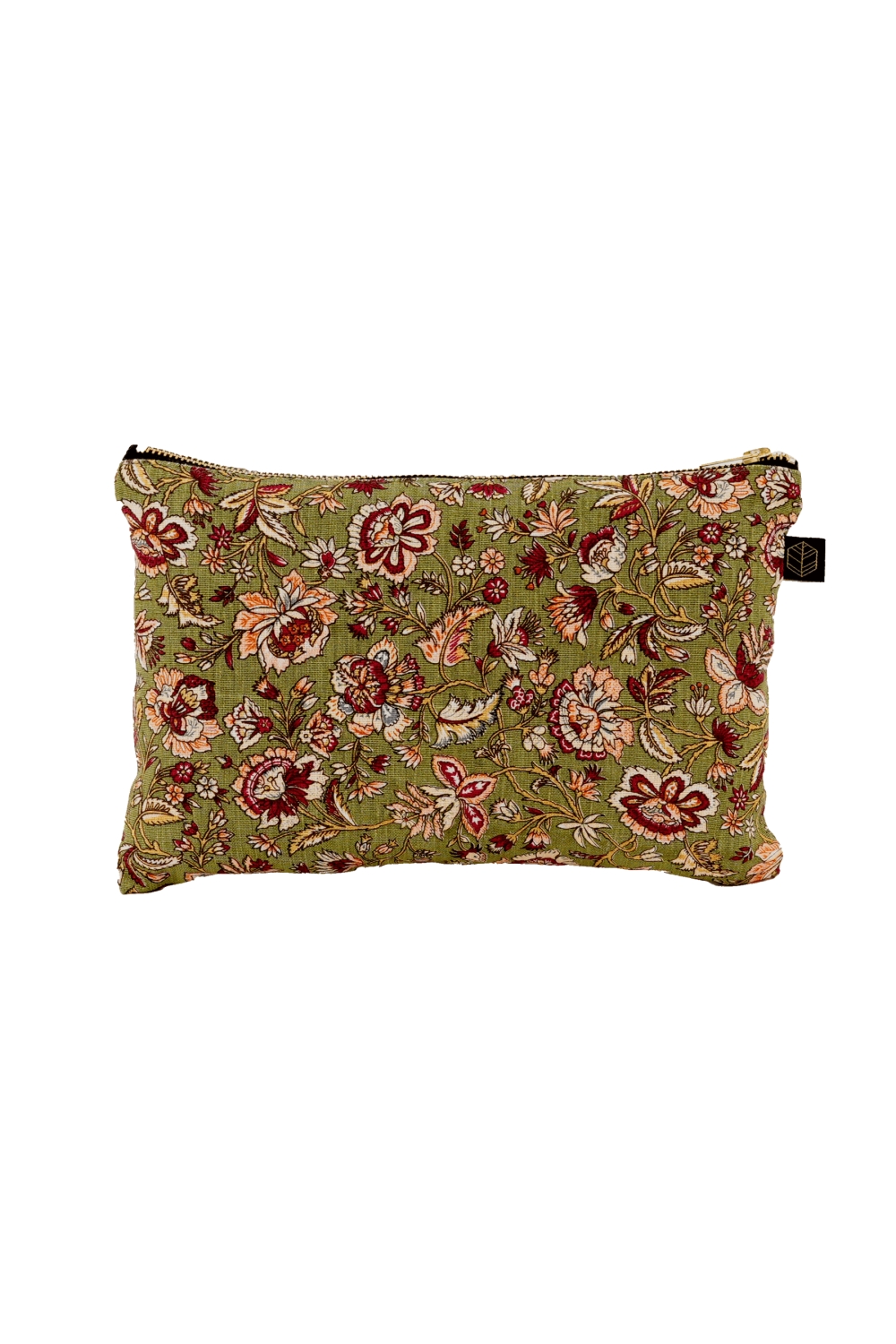 Trousse en lin imprimé floral - Trieste 19 x 29 cm - 100% lin imprimé floral