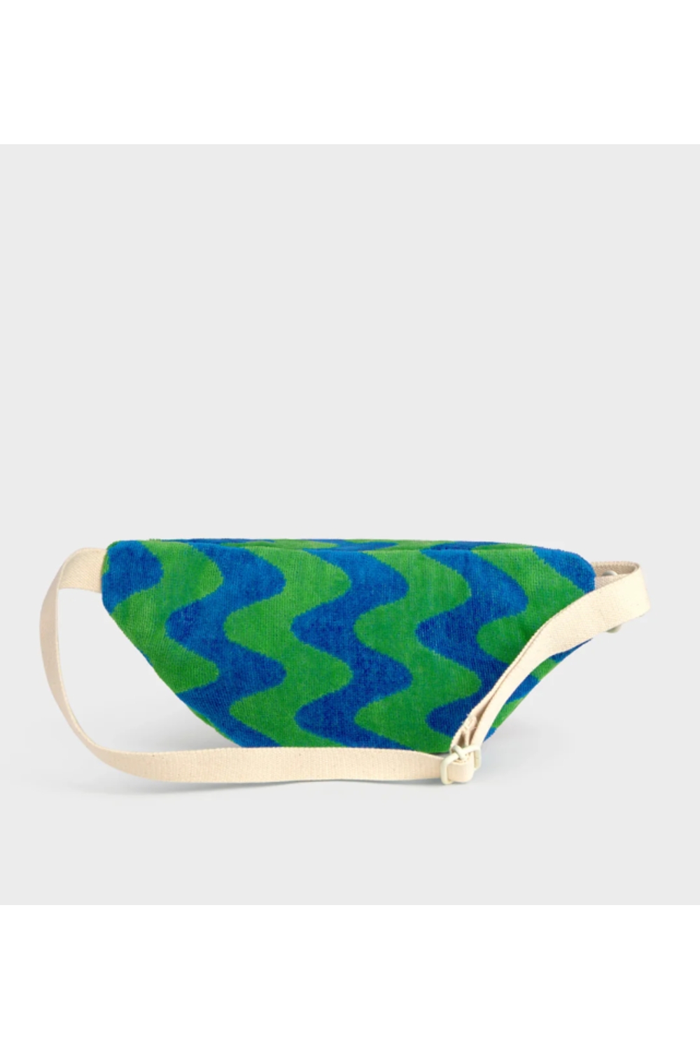 Le sac banane Goa de Wouf, fabriqué en tissu éponge 100% coton biologique, offre une solution pratique pour avoir vos essentiels à portée de main grâce à sa sangle ajustable. Son motif vague graphique, composé de lignes alternées vert pétard et bleu Majorelle, crée un effet visuel lumineux et dynamique. Sa doublure intérieure déperlante et son compartiment unique en font l'option idéale pour y ranger portefeuille, clés et téléphone lors de vos déplacements.