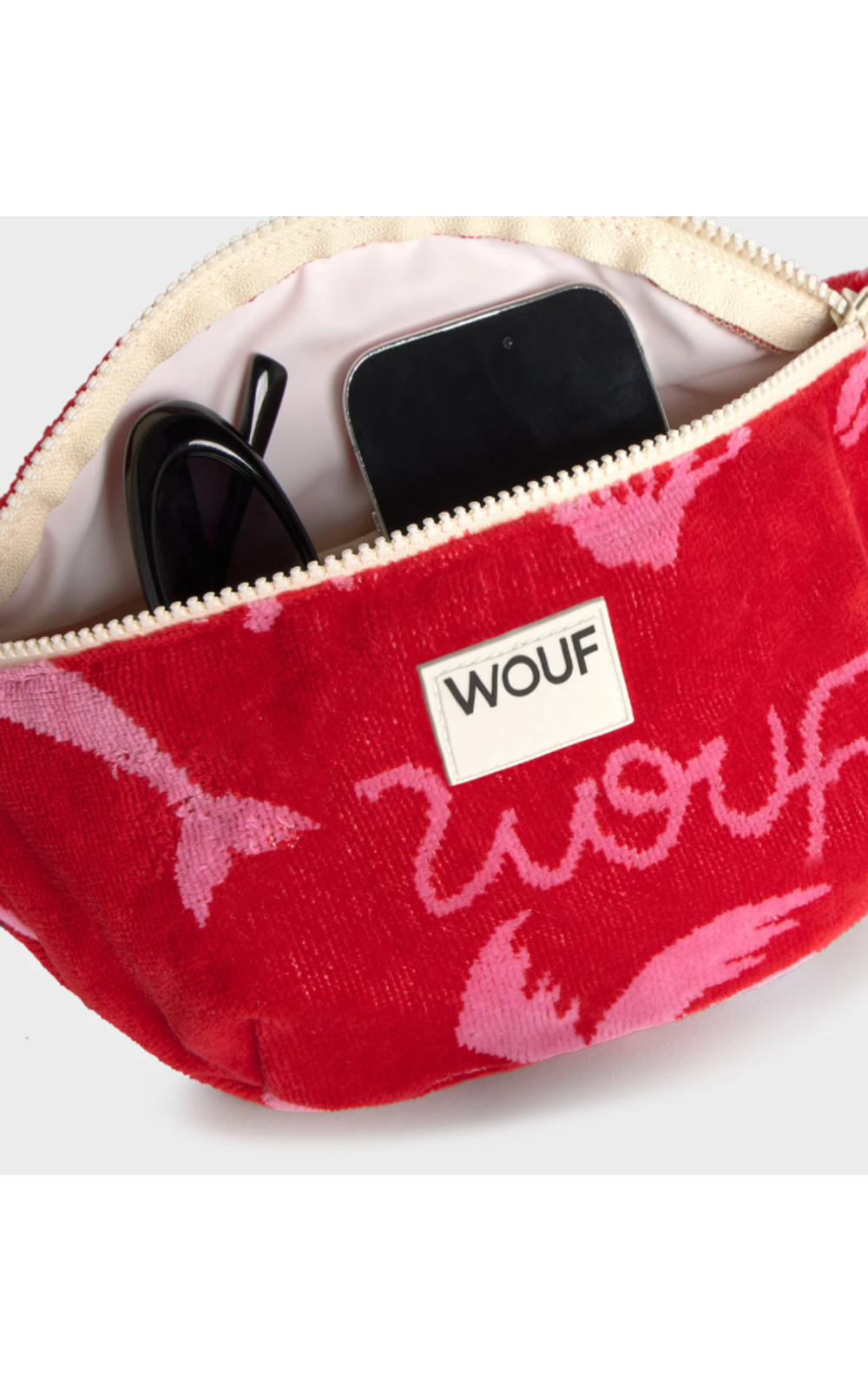 Le sac banane Tulum de Wouf, fabriqué en tissu éponge 100% coton biologique, offre une solution pratique pour avoir vos essentiels à portée de main grâce à sa sangle ajustable. Son fond rouge vibran capte immédiatement le regard, tandis que ses motifs topicaux roses, dauphin fleurs exotiques et illustrations solaires, crée un effet visuel crée une irrésistible énergie estivale. Un veritable concentré de soleil, qui évoque instantanément les vacances, la liberté et la douceur de vivre. Sa doublure intérieure déperlante et son compartiment unique en font l'option idéale pour y ranger portefeuille, clés et téléphone lors de vos déplacements.