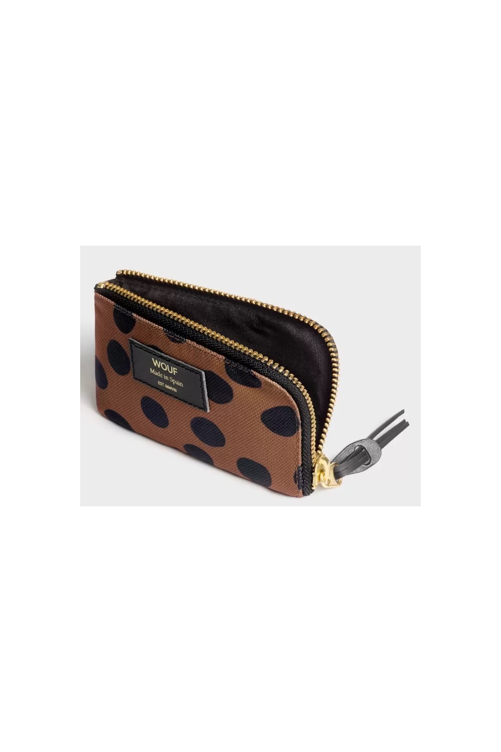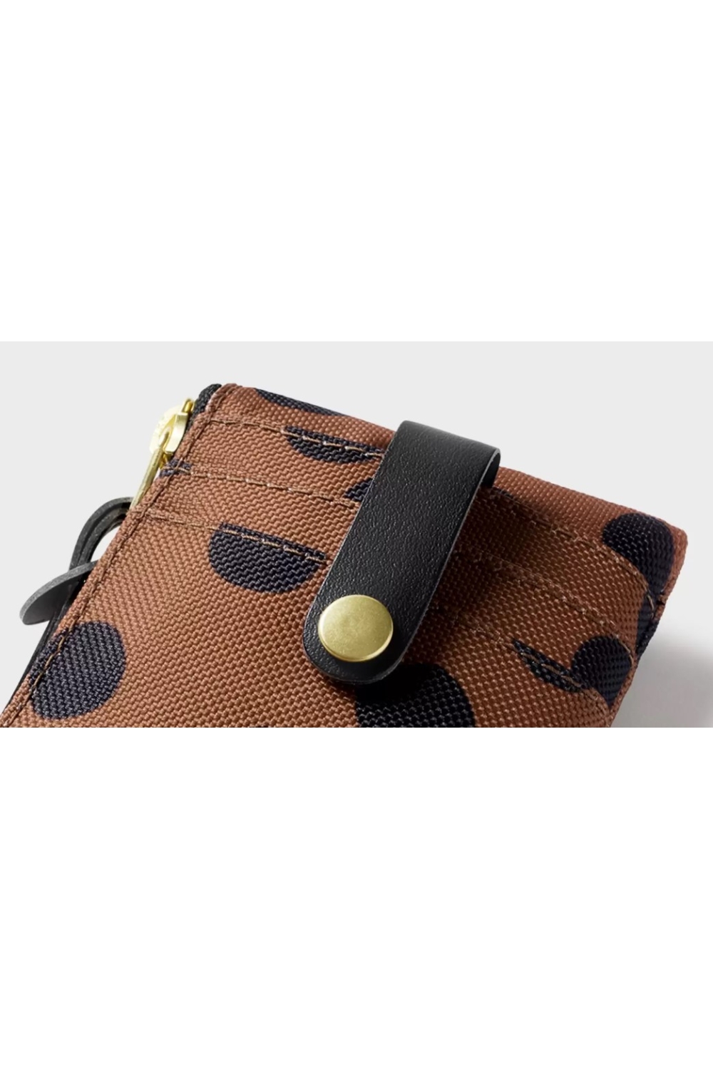 Ici, le porte-carte Dots et son sobre motif à pois noirs sur fond Tabac sera votre meilleur ami en conservant votre monnaie et gardant vos cartes bien rangées !