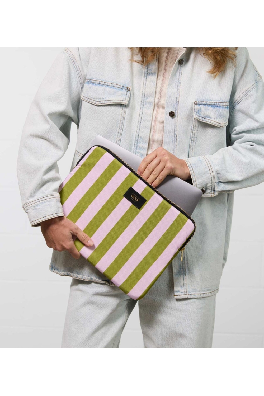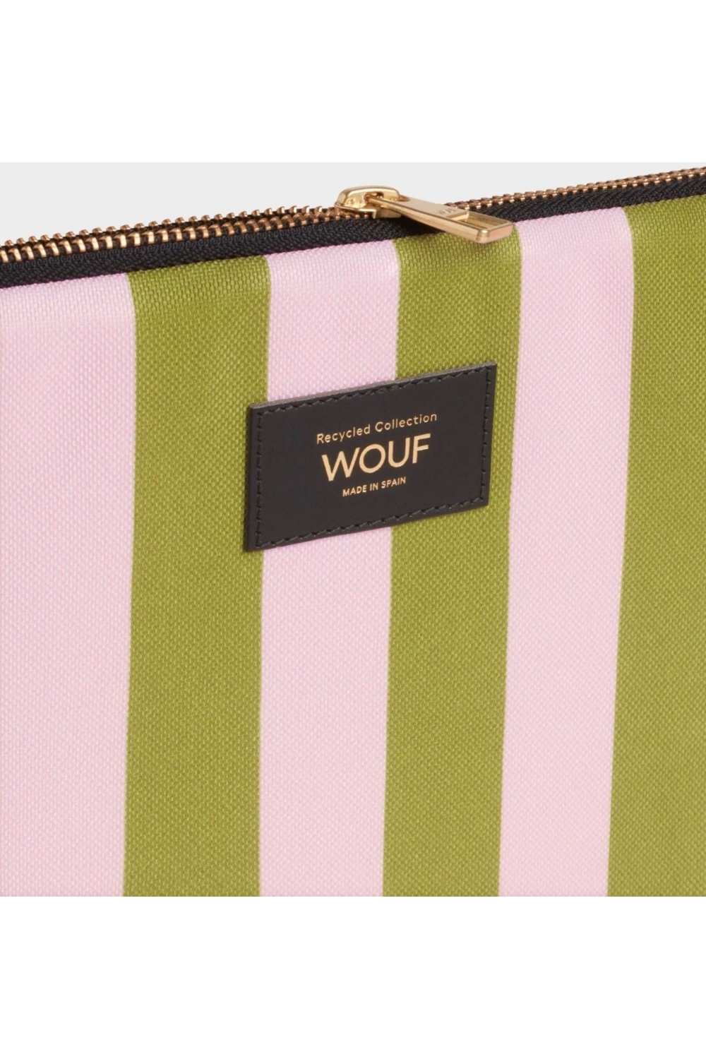 Apportez une touche d'élégance avec la housse d'ordinateur 13 & 14 pouces, CABANA de WOUF! Fabriquée en 100% tissu recyclé avec finition déperlante, elle protège efficacement votre ordinateur des chocs et des éclaboussures grâce à son rembourrage double face.