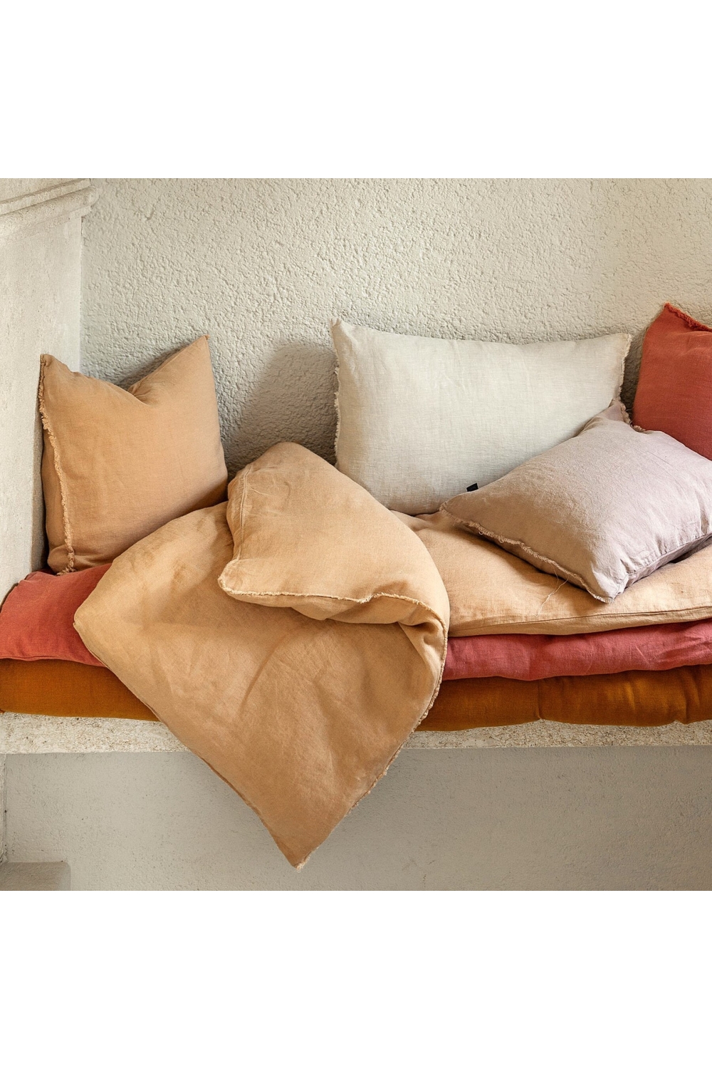 Confectionnés en lin lavé et coton, ces coussins offrent une douceur incomparable et une texture agréable au toucher.