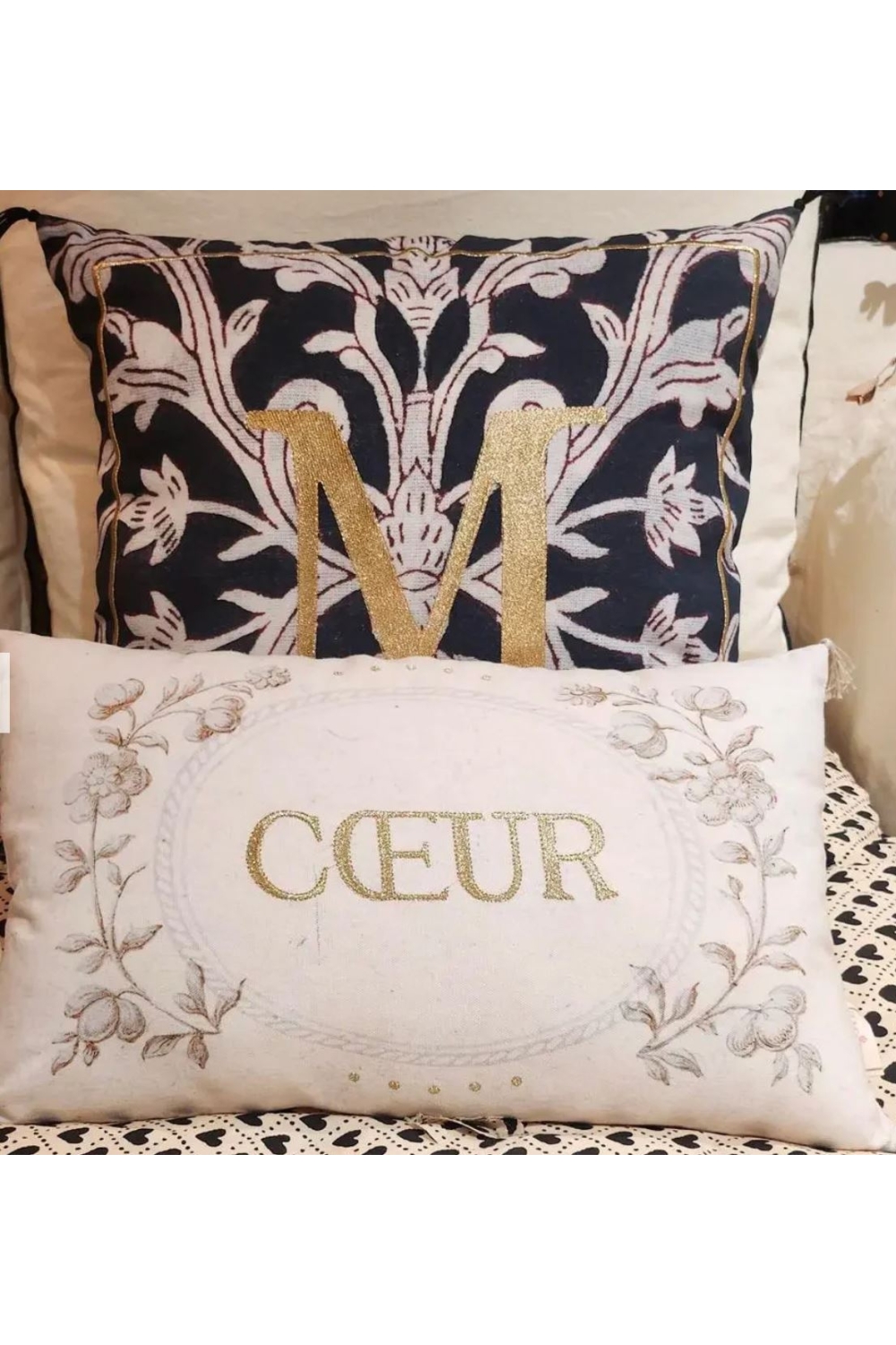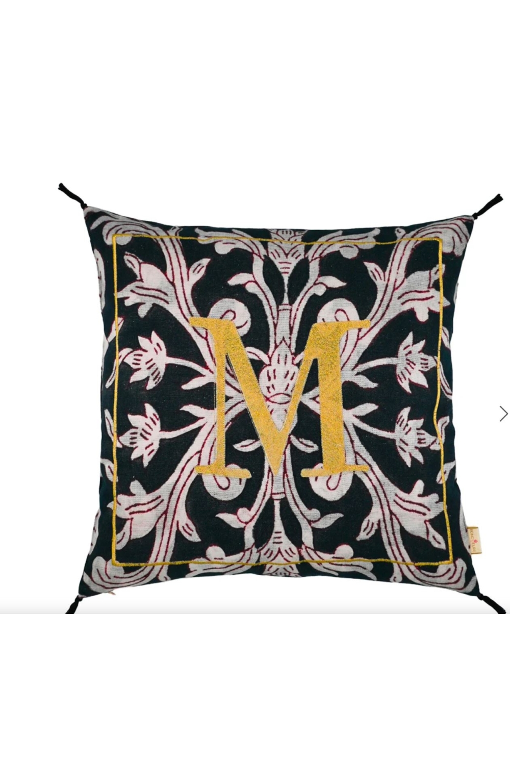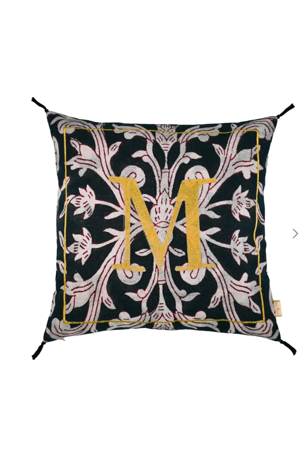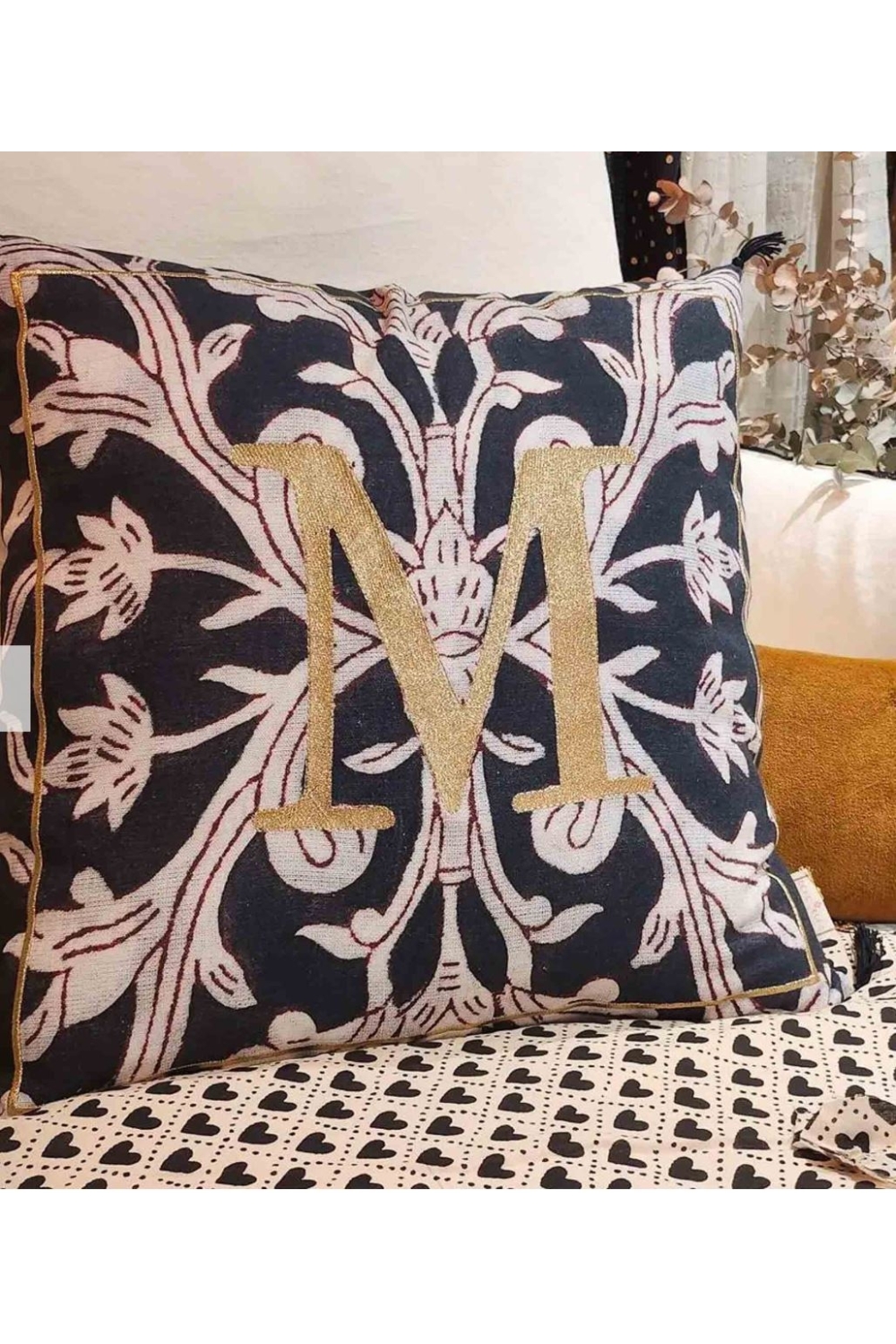 Coussin 50x50 imprimé et brodé "Enluminure Lettre M ".